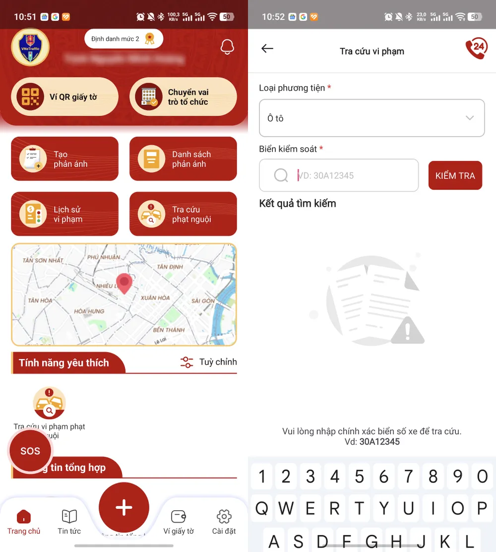 Tra cứu phạt nguội thông qua ứng dụng VNeTraffic. Ảnh: MINH HOÀNG