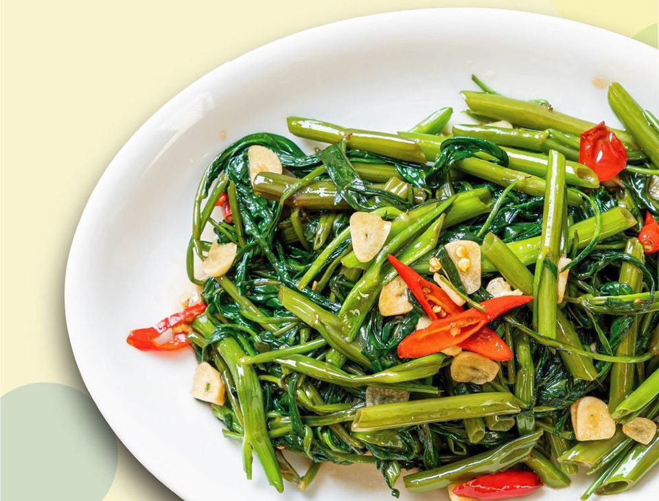 Xào rau muống (tiếp theo): Khi rau vừa chín tới, cho nước mắm, muối, hạt nêm, bột ngọt vào nêm nếm vừa ăn rồi tắt bếp. Vắt một ít nước cốt chanh và xắt mỏng ớt tươi rồi cho vào chảo rau, đảo đều tay một lần nữa rồi vớt ra đĩa.