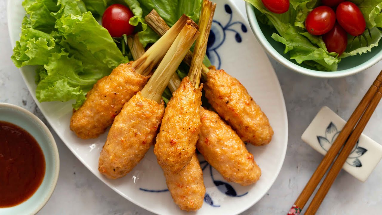 Tạo hình chạo tôm: Mía chẻ thành những thanh nhỏ. Lấy hỗn hợp chạo tôm ra. Nắm thành từng viên nhỏ dài bao quanh thanh mía.