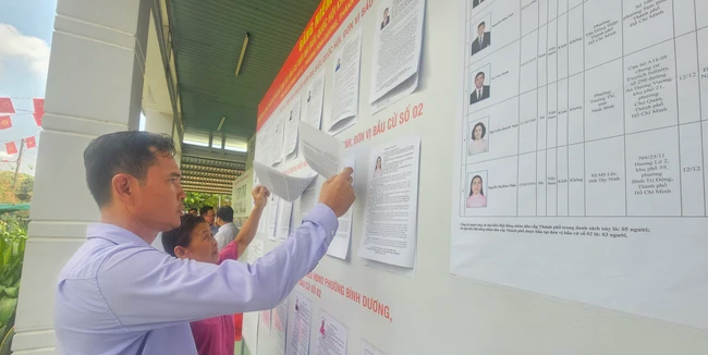 Cử tri theo dõi thông tin các ứng cử viên tại các khu phố
