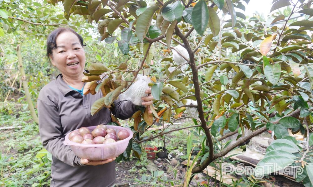 Cũng tại Ấp 3, chị Lê Thị Diệu là một trong những hội viên tích cực áp dụng mô hình này. Những cây cóc trong vườn nhà chị đang ra trái sai trĩu.