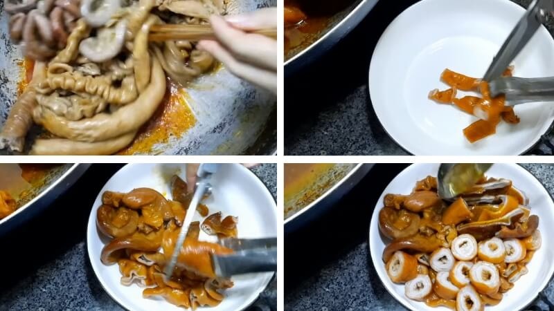 Sơ chế lòng heo kỹ lưỡng là bước quan trọng để món ăn không bị hôi.