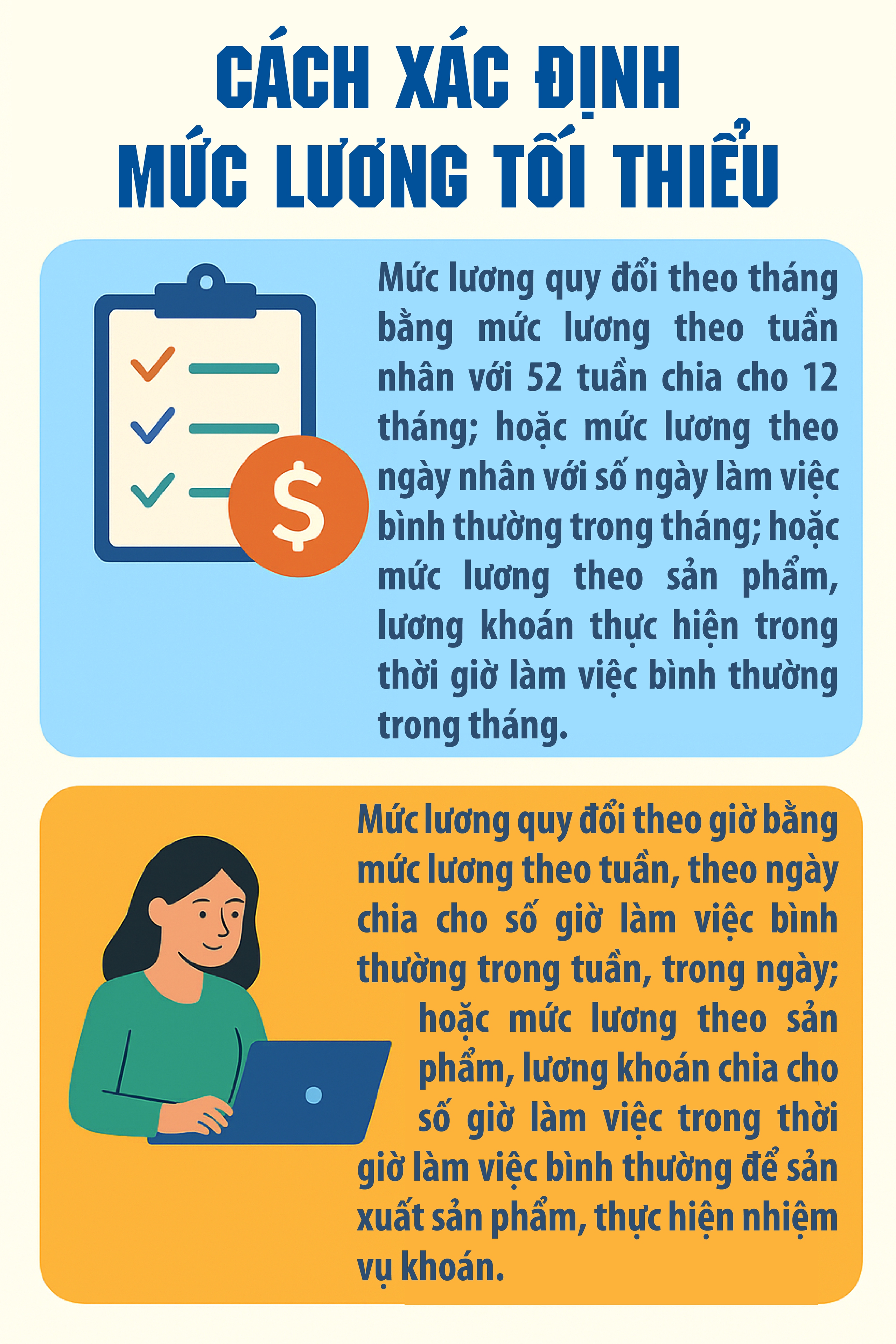 Mức lương quy đổi theo tháng hoặc theo giờ trên cơ sở thời giờ làm việc bình thường do người sử dụng lao động lựa chọn theo quy định của pháp luật lao động như sau: