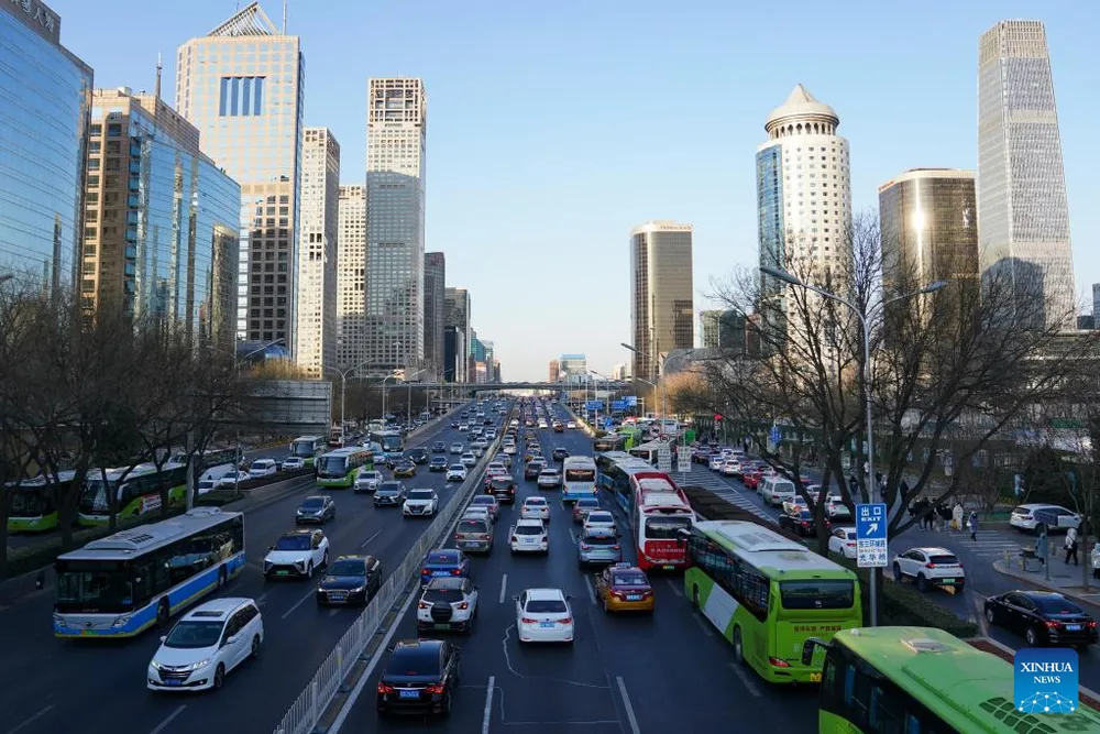 Các phương tiện di chuyển trên đường phố của quận Triều Dương, Bắc Kinh (Trung Quốc). Ảnh: TÂN HOA XÃ