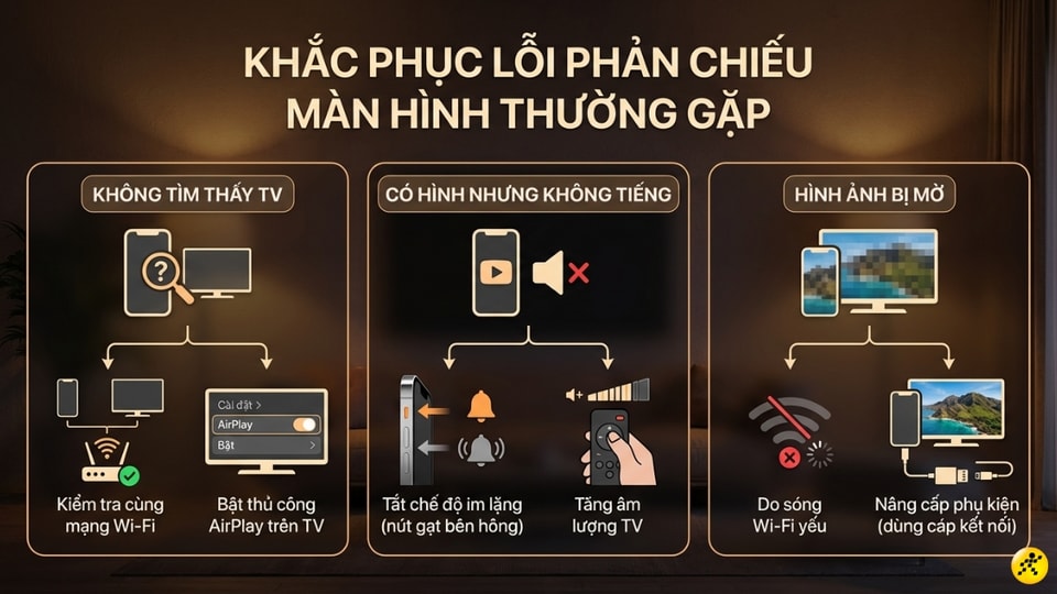 Phản chiếu màn hình iPhone lên tivi là giải pháp tối ưu để tận hưởng phim ảnh hoặc chơi game trên không gian lớn. Tùy thuộc vào dòng tivi (Samsung, Sony, LG hay TCL) và đời máy iPhone, bạn có thể lựa chọn kết nối không dây qua Wi-Fi hoặc sử dụng cáp HDMI để đạt độ ổn định cao nhất.