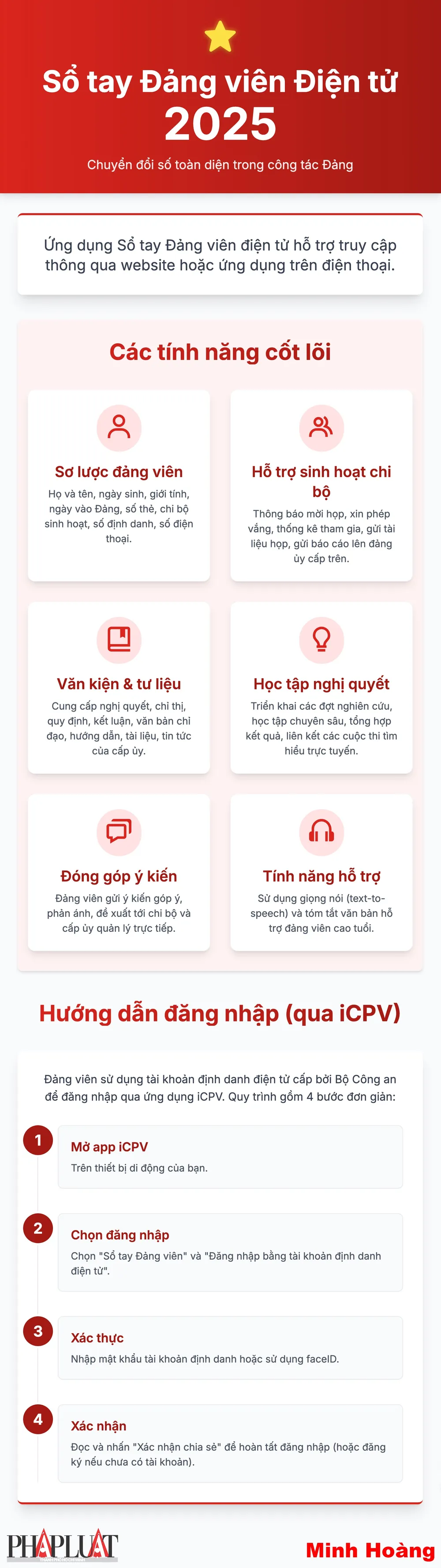 Infographic: Hướng dẫn sử dụng Sổ tay đảng viên điện tử 2025 mới nhất. Thực hiện: MINH HOÀNG