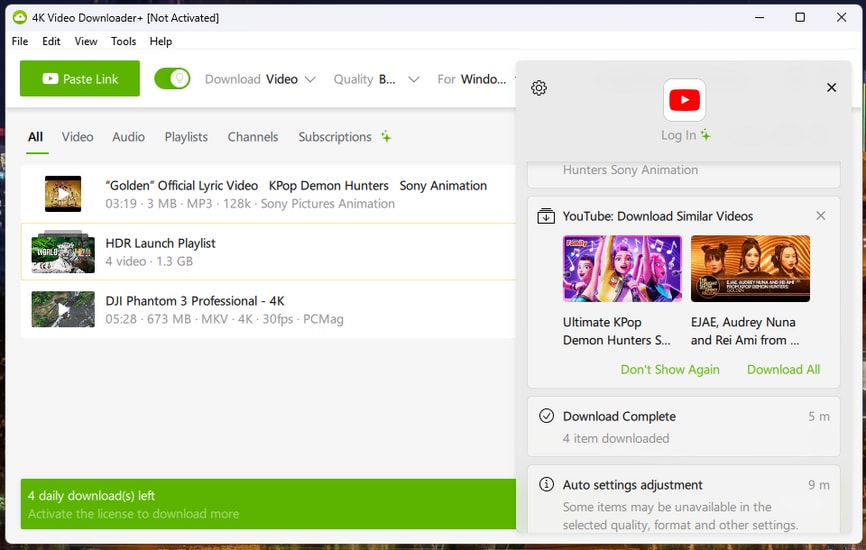 4K Video Downloader Plus: Nổi bật với giao diện đơn giản, tốc độ nhanh, hỗ trợ tải video 8K, tải toàn bộ danh sách phát (playlist) hoặc cả kênh. Phiên bản miễn phí giới hạn số lượt tải hàng ngày.