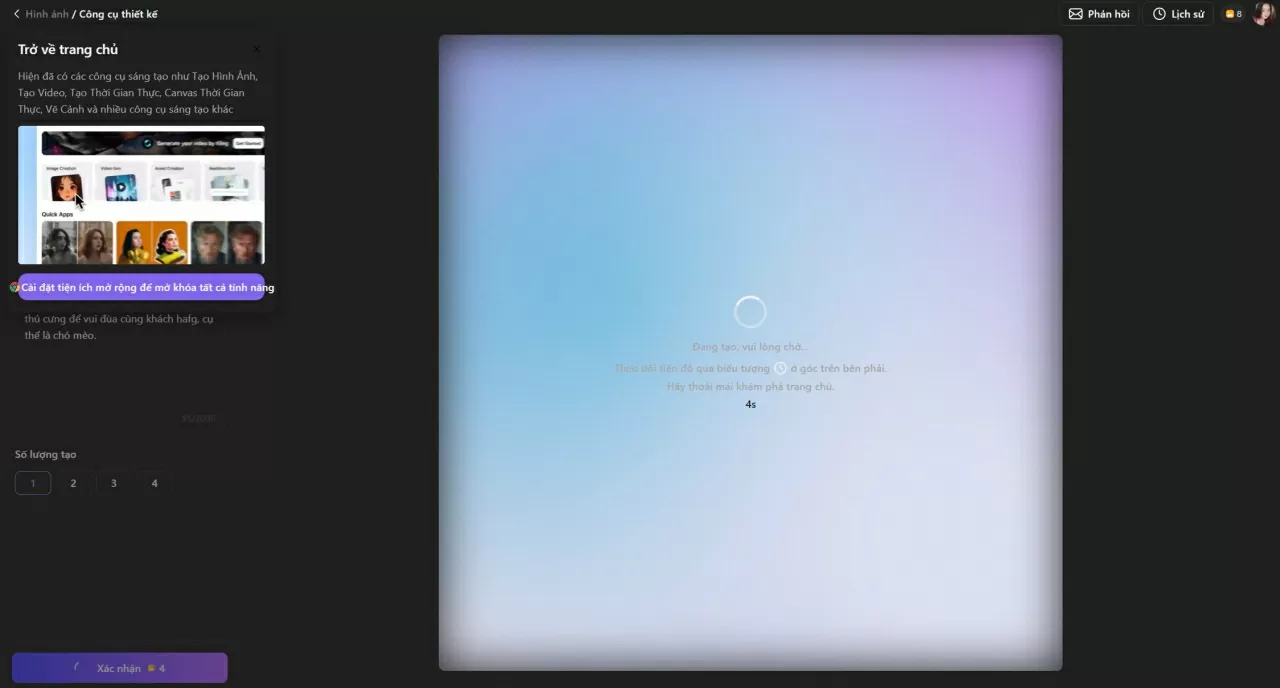 Chờ vài giây để hệ thống AI xử lý và tạo ra nhiều mẫu logo khác nhau.