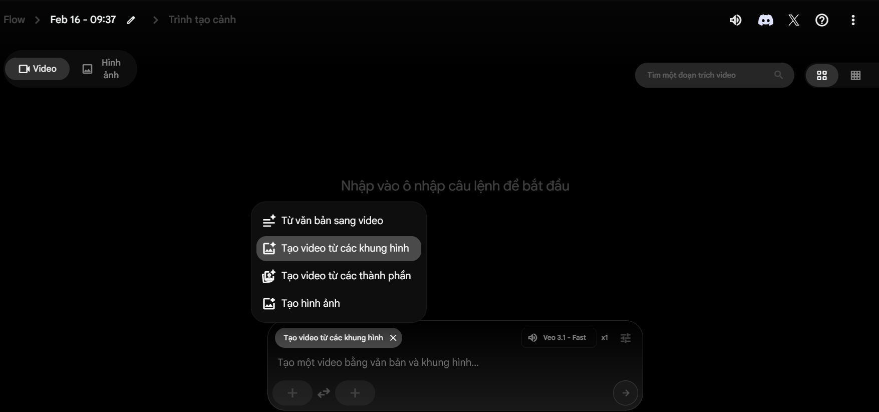 Truy cập Flow Ai và chọn chế độ tạo video từ khung hình