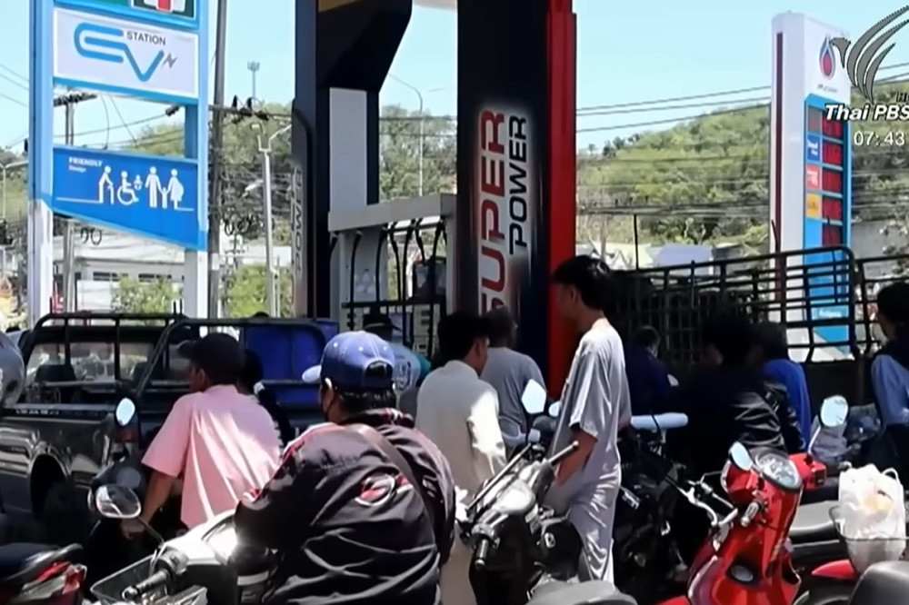 Người dân Thái Lan đi đổ xăng. Ảnh: Thai PBS