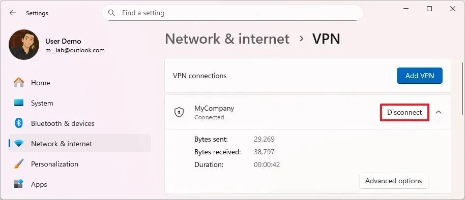 Để ngắt kết nối, bạn chỉ cần thực hiện ngược lại bằng cách nhấn vào nút Disconnect trong cùng giao diện quản lý.