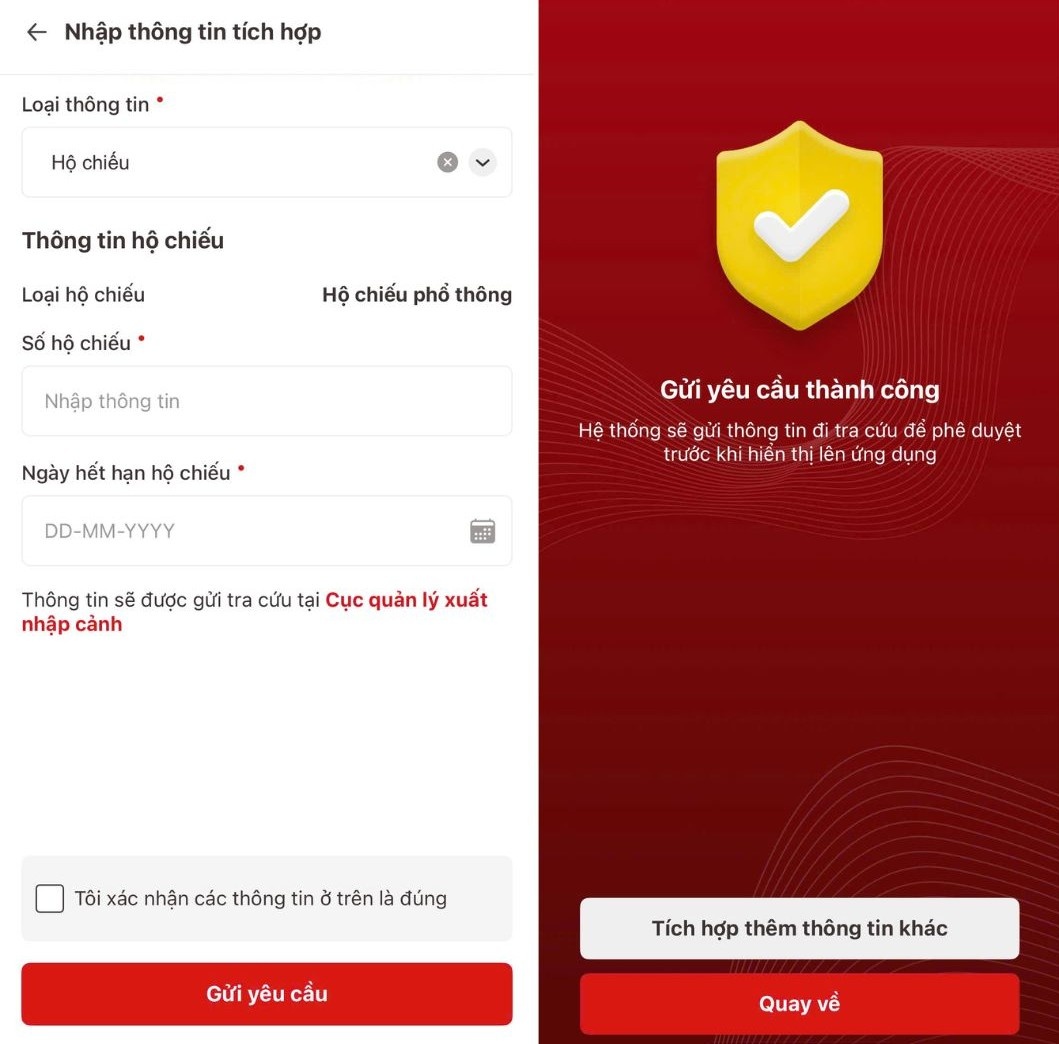 Ứng dụng sẽ gửi đơn yêu cầu lên cơ quan quản lý của địa phương và thông báo “Gửi yêu cầu thành công”. Người dùng cần chờ đợi để thông tin hộ chiếu được tích hợp vào ứng dụng VNeID.