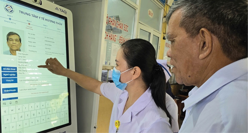 Tại Trung tâm Y tế (TTYT) Hương Thủy, một trong những điểm nổi bật được ghi nhận trong thời gian gần đây là đã đẩy mạnh ứng dụng công nghệ trong quy trình KCB. Với quy mô 120 giường bệnh, khoảng 110 bệnh nhân nội trú và mỗi ngày tiếp nhận 500 bệnh nhân ngoại trú, Trung tâm áp dụng nhiều giải pháp nhằm giảm tải và tăng tính chủ động cho người dân. Từ tháng 6/2025, hệ thống ki-ôt y tế thông minh tích hợp thanh toán đã chính thức đưa vào vận hành, giúp người dân chỉ cần vài phút để đăng ký khám và thanh toán mà không phải xếp hàng chờ đợi như trước.