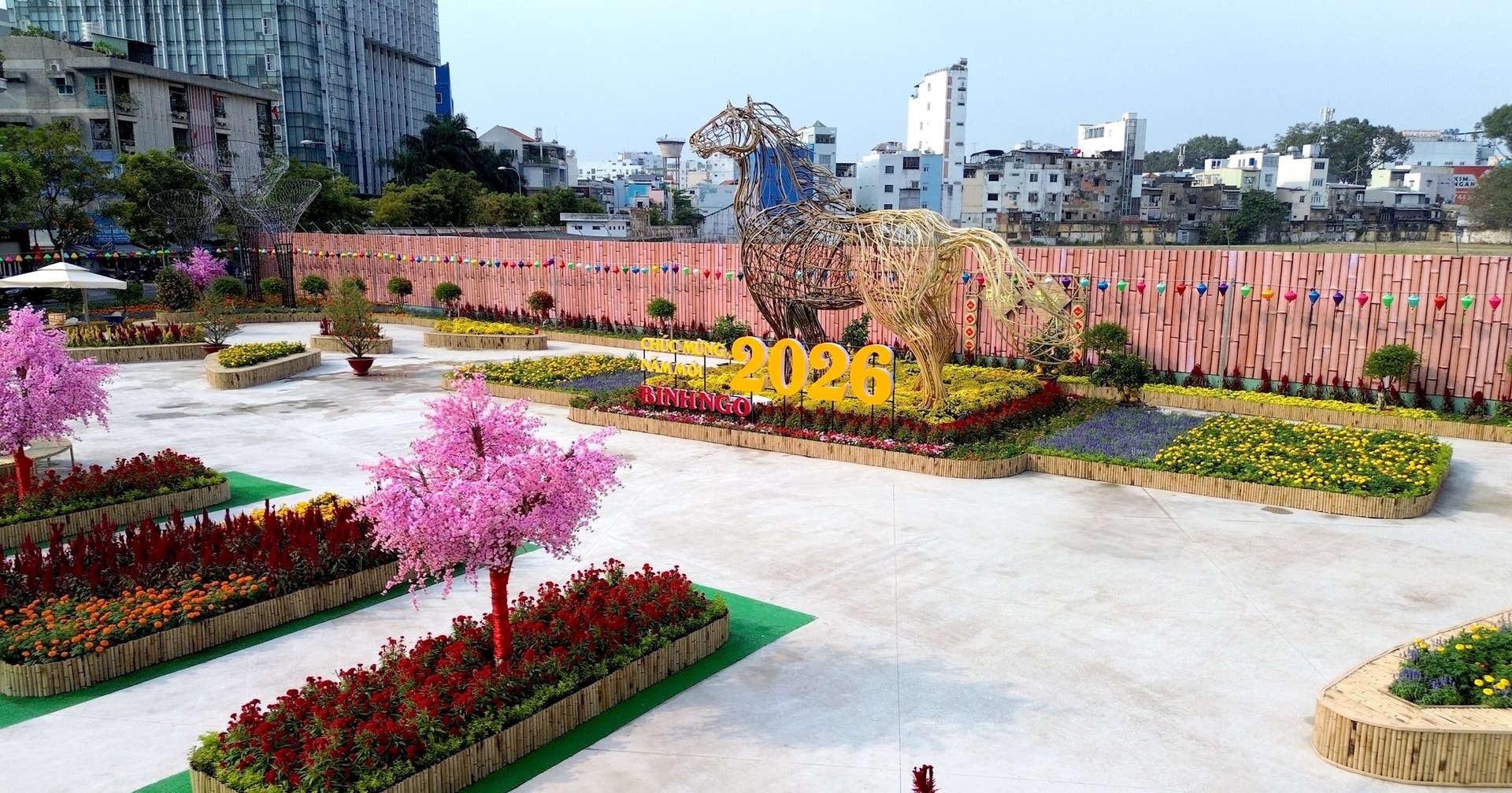 Khu đất thuộc dự án Thương xá Tax nằm cạnh đường hoa Nguyễn Huệ được đầu tư thành công viên Tết rực rỡ