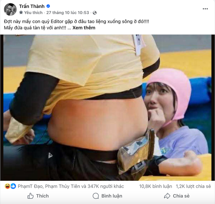 Bài đăng có lượt tương tác đạt đỉnh trong 5 ngày qua của Trấn Thành (Ảnh: Chụp màn hình).