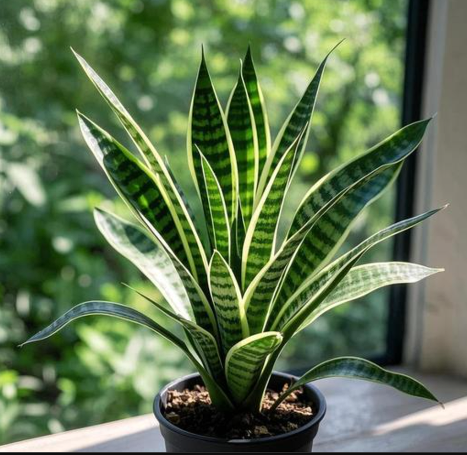 Cây lưỡi hổ với lá thẳng đứng, xanh mướt, mang lại sinh khí và may mắn khi đặt trong phòng khách hoặc văn phòng. Ảnh: Baidu