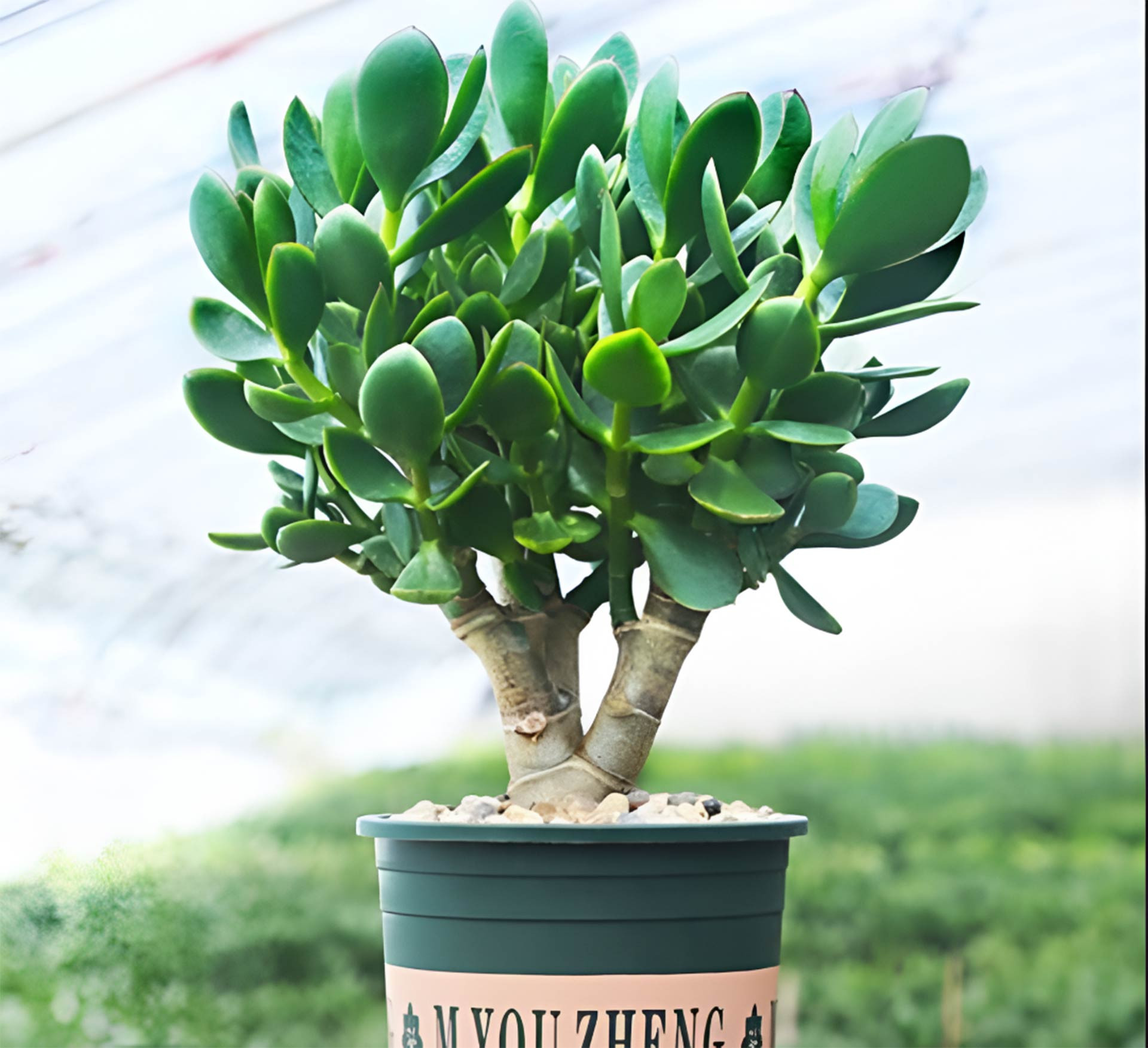 Cây ngọc bích với lá dày mọng nước, thích hợp đặt trong nhà hoặc văn phòng để mang lại tài lộc và may mắn. Ảnh: Baidu