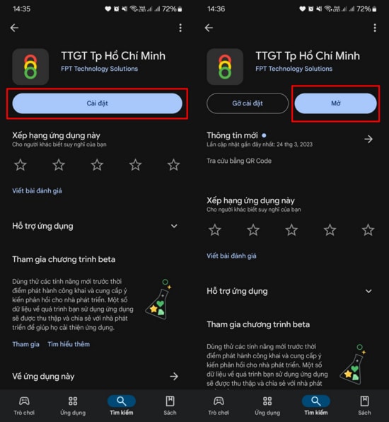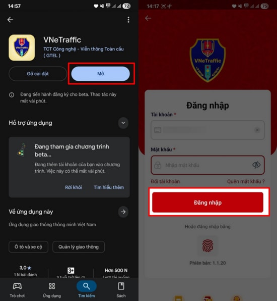 Người dùng cài đặt VNeTraffic từ kho ứng dụng điện thoại.