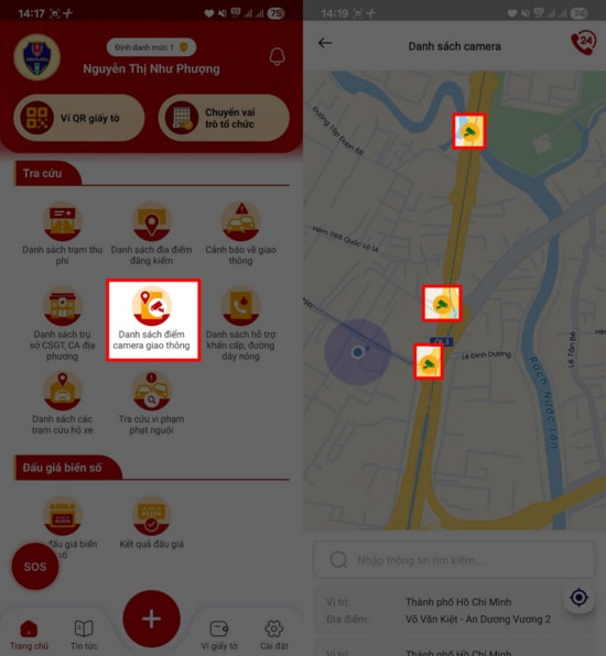 Người dùng tiến hành phóng to bản đồ hoặc nhập tên tuyến đường vào thanh tìm kiếm. Các biểu tượng camera trên bản đồ sẽ giúp bạn nhận diện chính xác những điểm có lắp đặt hệ thống giám sát phạt nguội.