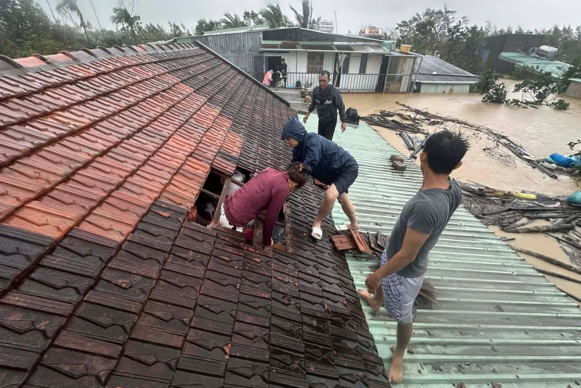 Lũ lên gần đến nóc nhà một hộ dân tại khu vực tỉnh Quy Nhơn cũ, nay thuộc Gia Lai. Ảnh: Lương Vĩnh Long Nhật.