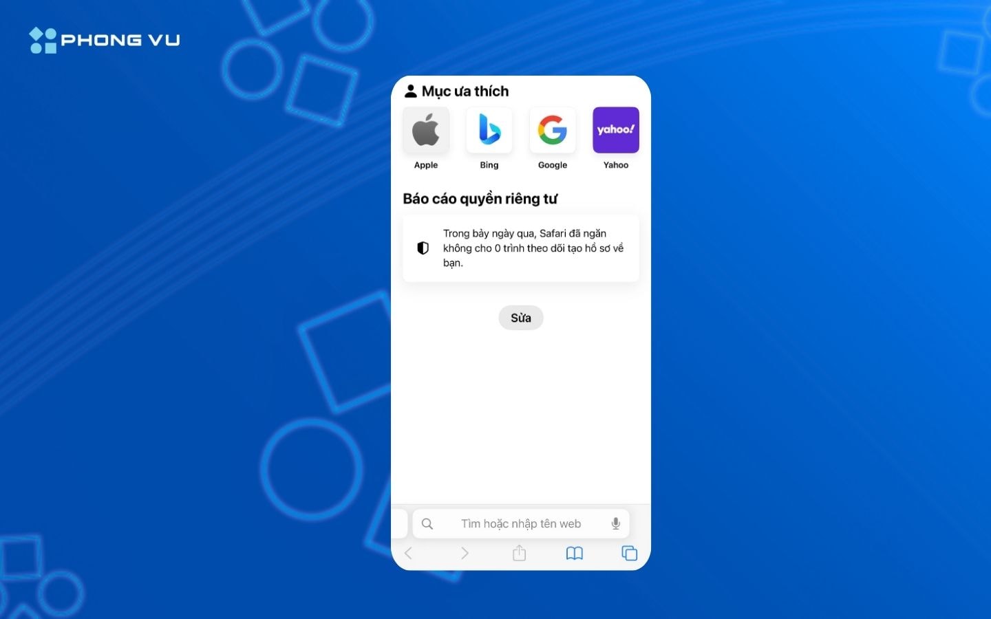 Chế độ Duyệt web riêng tư (Private Browsing): Safari sẽ không lưu lại lịch sử, cookie hay thông tin tự động điền.