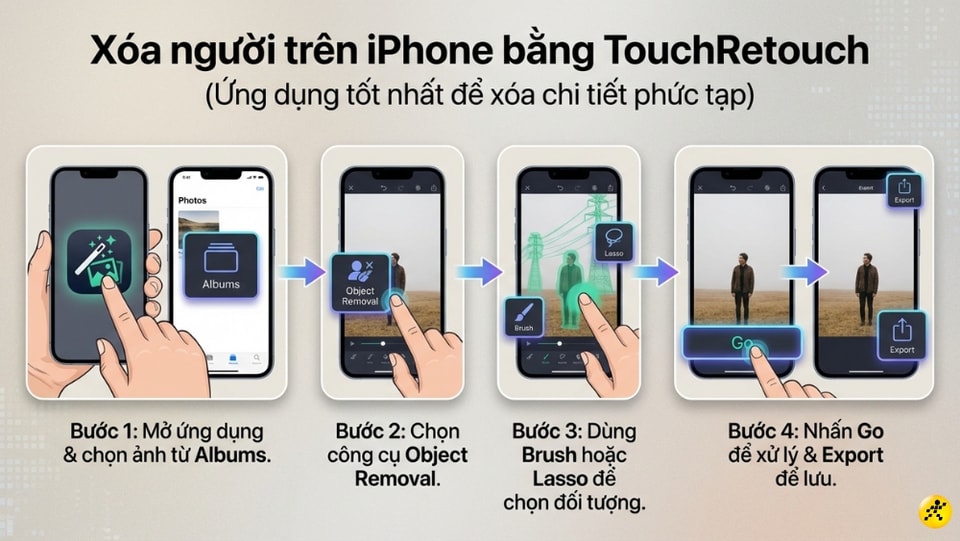 Việc loại bỏ các chi tiết thừa hay người lạ giúp bức ảnh trở nên hoàn hảo và tập trung vào chủ thể chính. Người dùng iPhone hiện nay có nhiều lựa chọn từ tính năng Clean Up tích hợp sẵn trên iOS 18 đến các ứng dụng chuyên nghiệp và công cụ AI trực tuyến mạnh mẽ.