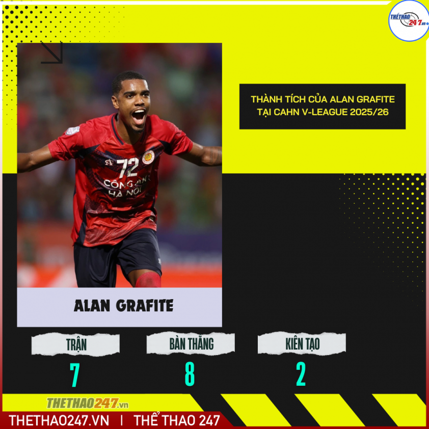 Tầm ảnh hưởng của Alan Grafite lên lối chơi của CAHN là không thể phủ nhận. Kể từ đầu mùa giải V.League 2025/26, anh đã ghi tới 8 bàn và có 2 pha kiến tạo chỉ sau 7 trận, đạt hiệu suất cao nhất giải đấu. Mùa trước, tiền đạo này đã thâu tóm cả ba danh hiệu cá nhân quan trọng: Cầu thủ xuất sắc nhất, đồng Vua phá lưới và một suất trong Đội hình tiêu biểu.