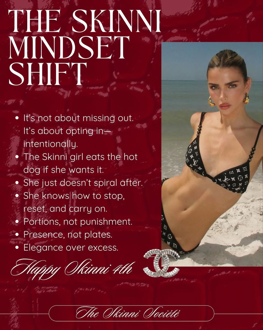 Một bài đăng trên Instagram của tổ chức Skinni Societe thúc đẩy các cô gái nên ăn uống dựa vào tiêu chuẩn của bản thân và biết chừng mực, thực tế, tổ chức này lại cổ xúy cho những hành động đi ngược với lợi ích sức khỏe của thành viên. Ảnh: @theskinnisociete/IG.