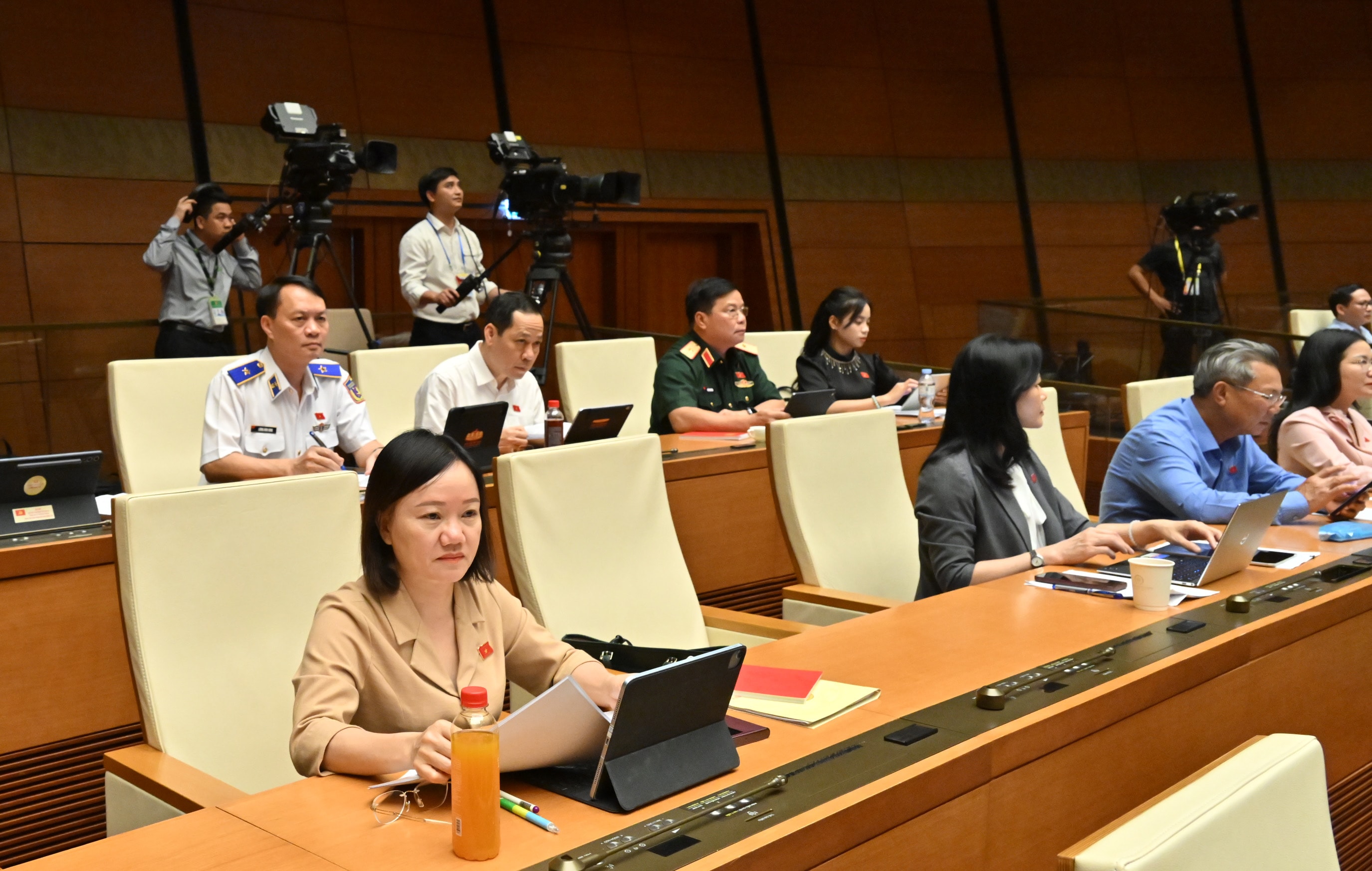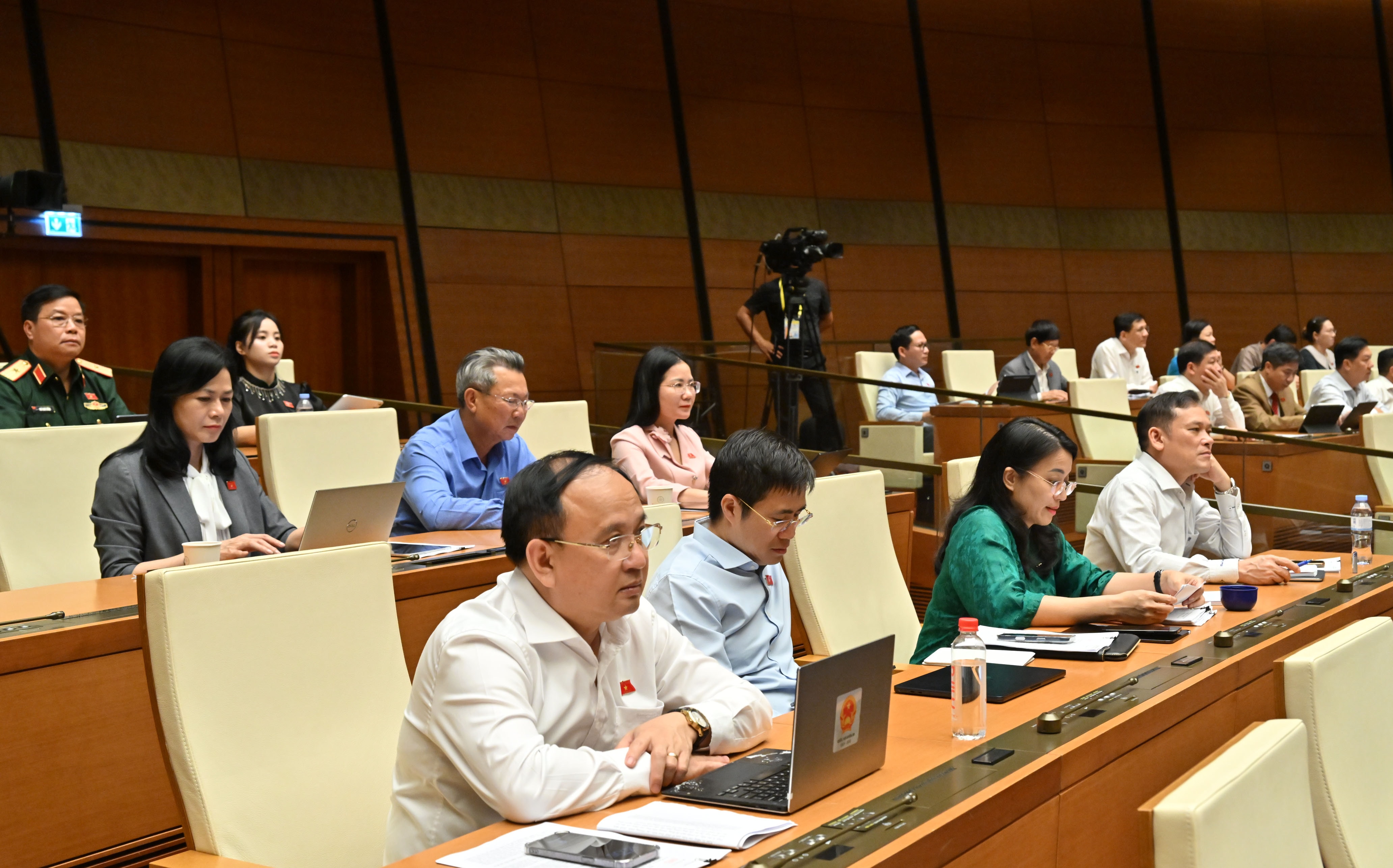 Các ĐBQH dự phiên họp tại Hội trường.