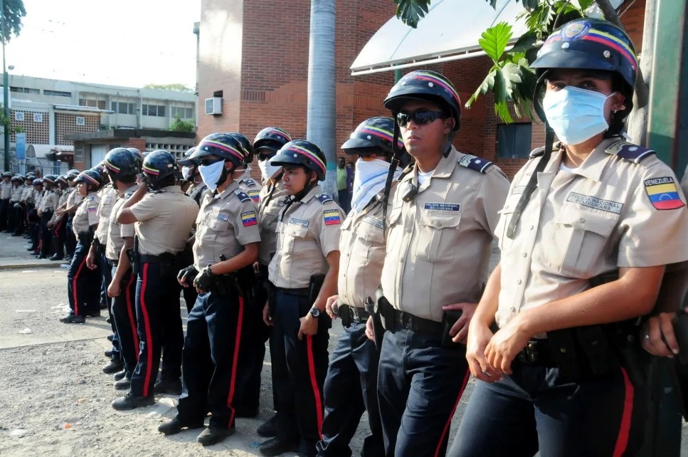Cảnh sát Venezuela đứng gác bên ngoài nhà xác nơi chứa thi thể tù nhân thiệt mạng sau bạo loạn ở Barquisimeto hồi tháng 1/2013. Ảnh: El Informador.