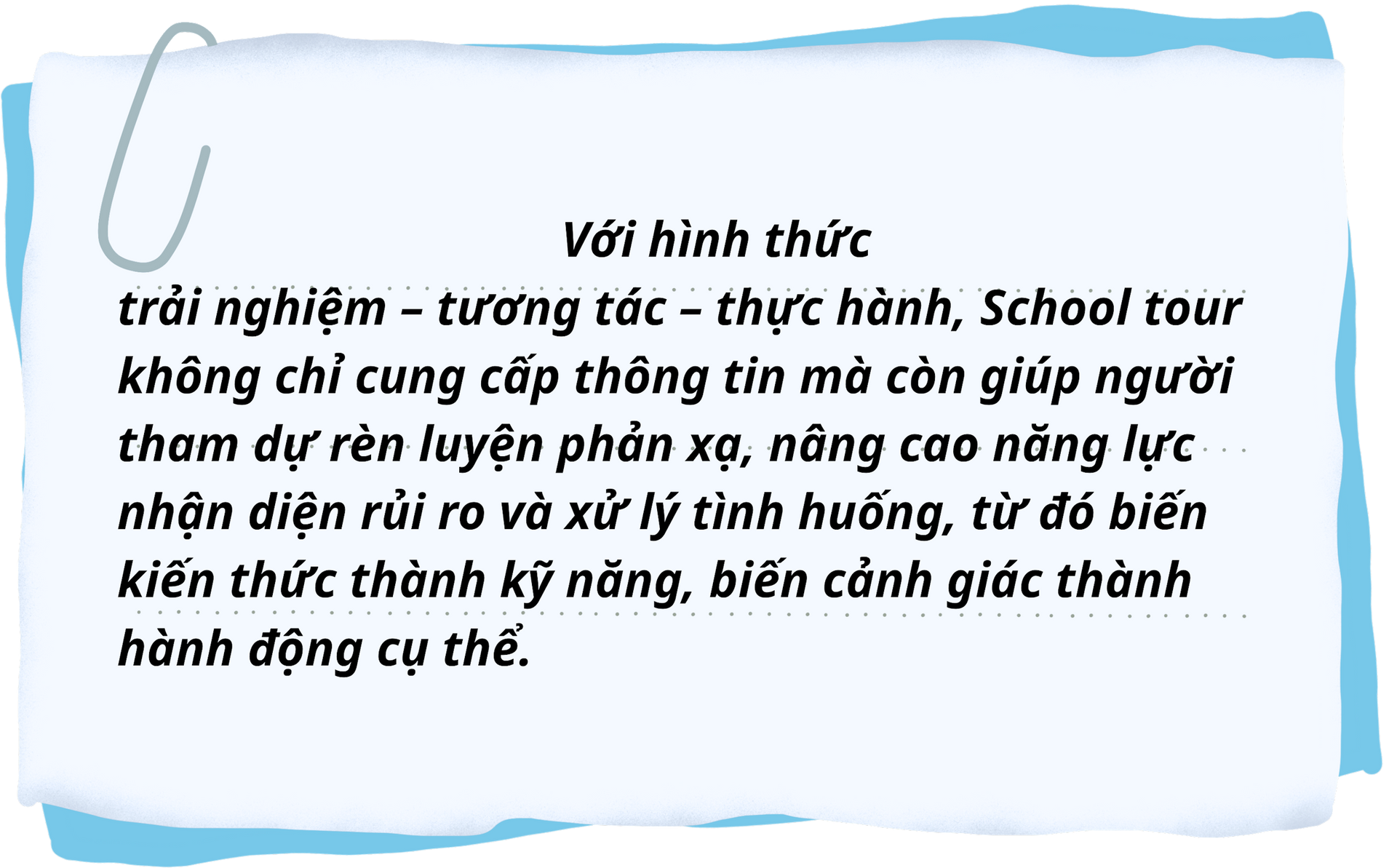 Xuất phát từ yêu cầu cấp thiết đó, Công an tỉnh Lâm Đồng đã phối hợp với nhiều đơn vị, tổ chức và doanh nghiệp triển khai chuỗi chương trình trang bị kỹ năng lưu động School tour - Hành trang số an toàn.