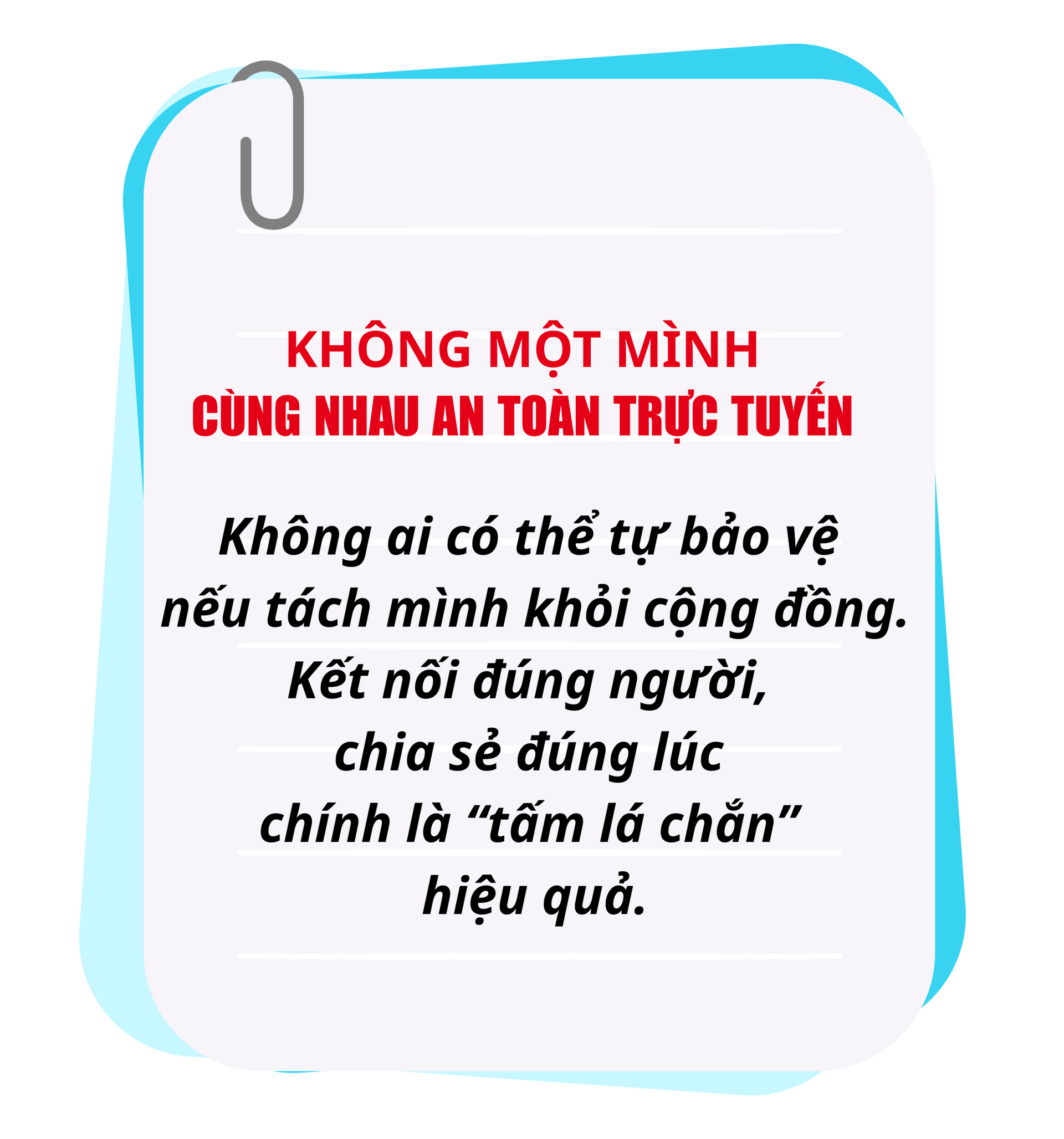 Trong khuôn khổ chương trình, trò chơi "Không một mình" trở thành điểm nhấn truyền thông giàu tính biểu tượng khi chuyển tải thông điệp trực quan an toàn trên không gian mạng cũng giống như ngoài đời thực.