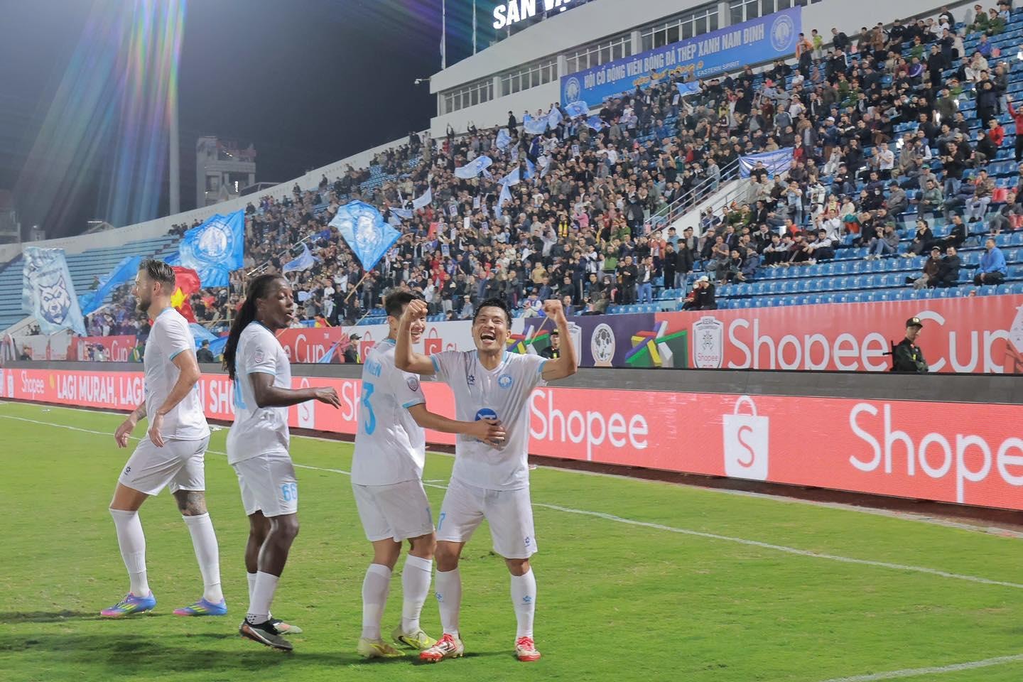 Văn Vĩ mở tỷ số trận đấu cho Nam Định FC. Ảnh Quang Đương