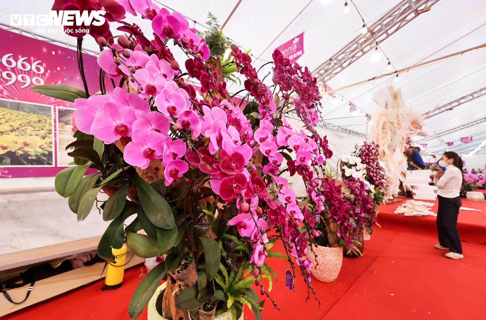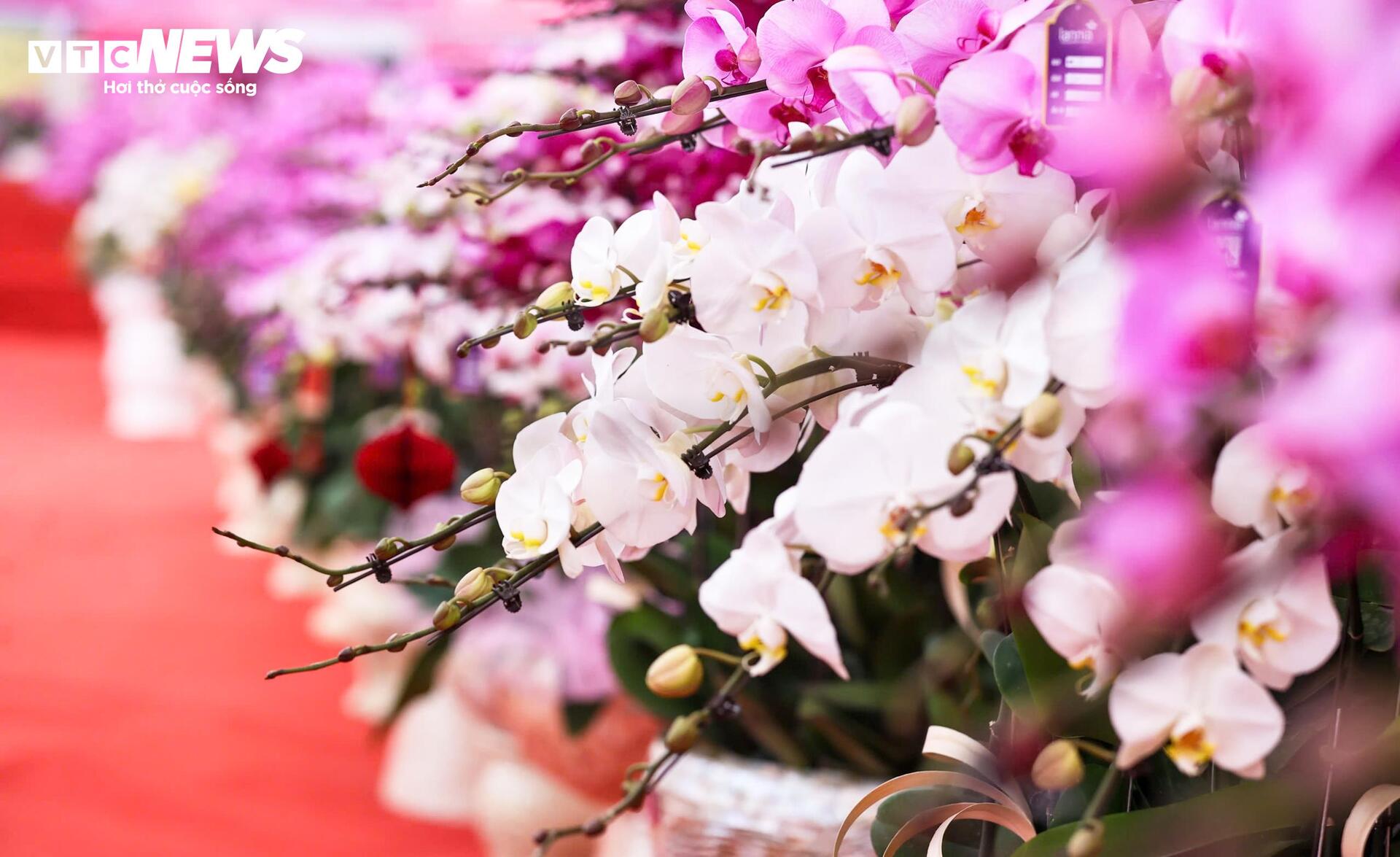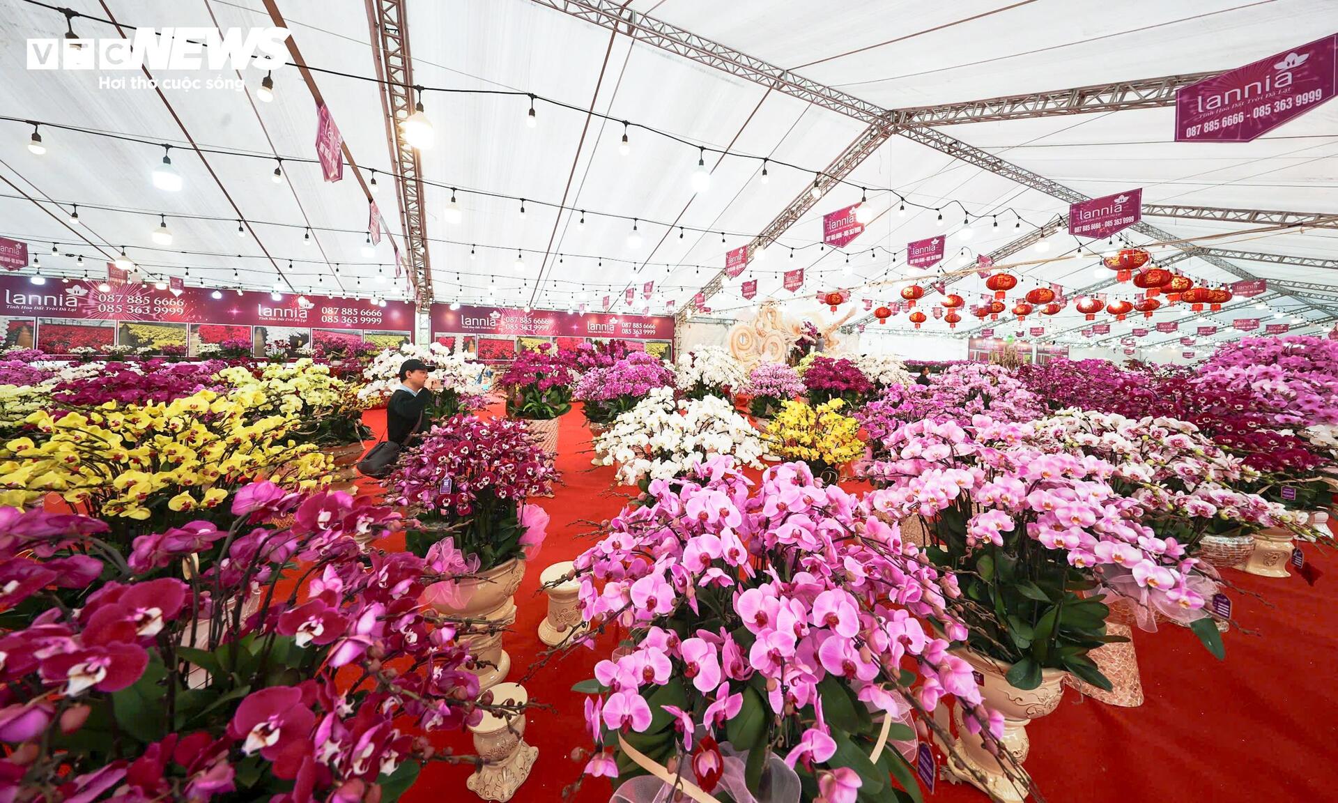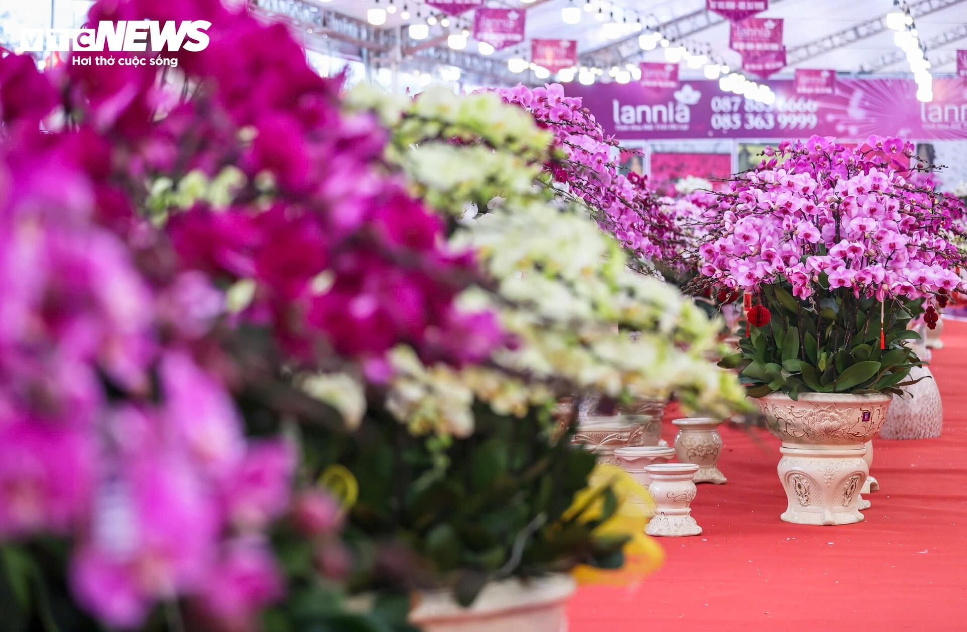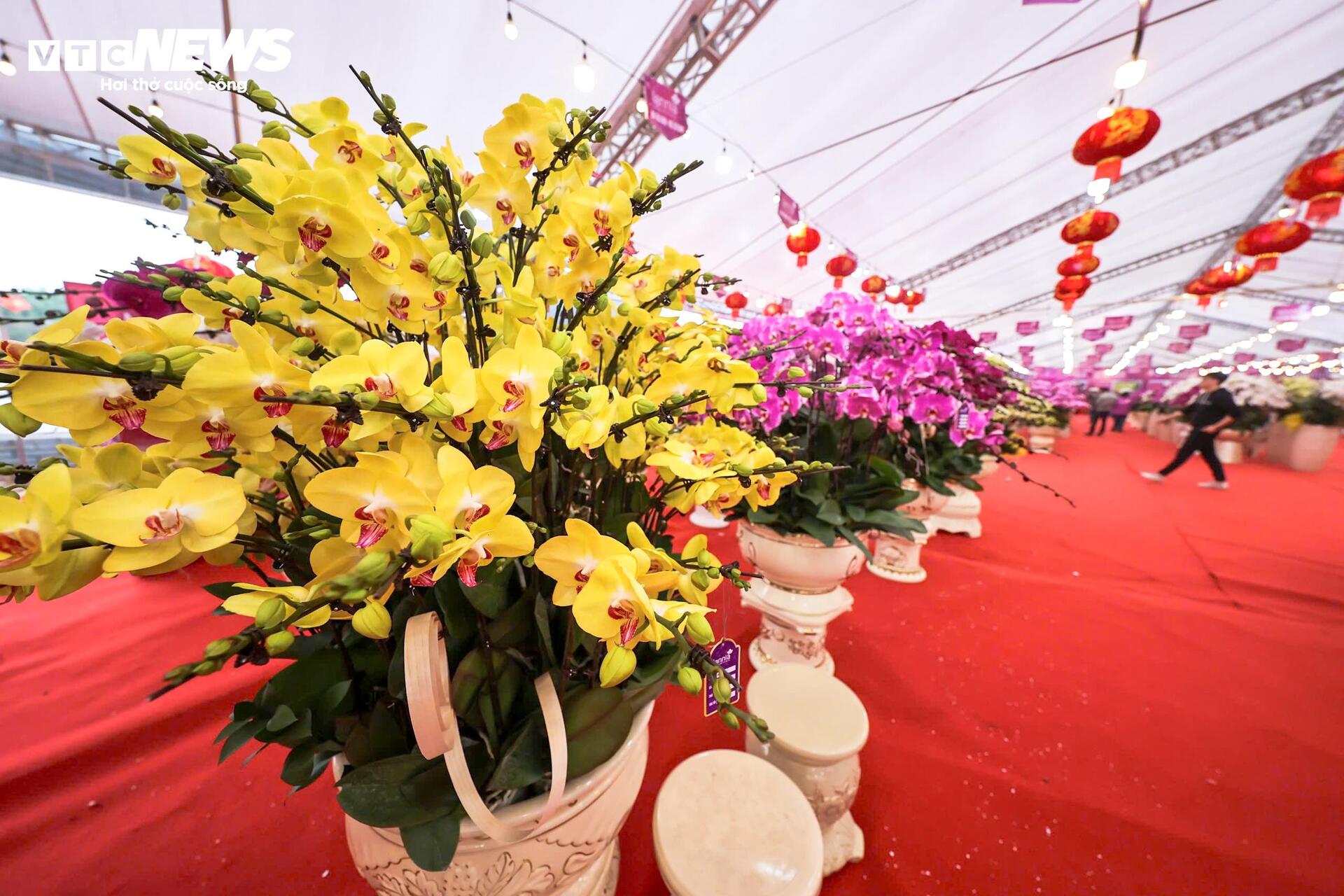 Khu vực quanh Sân vận động Quốc gia Mỹ Đình là một trong những điểm tập trung lớn, nơi hàng loạt chậu lan có giá trị từ vài triệu đến hàng chục triệu đồng được trưng bày, chuẩn bị phục vụ thị trường Tết.