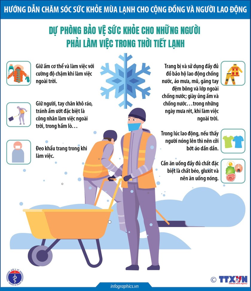 Hướng dẫn chăm sóc sức khỏe cho người lao động trong trời lạnh. Ảnh minh họa: TTXVN.