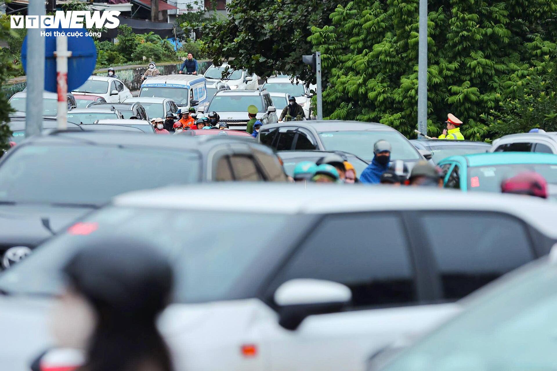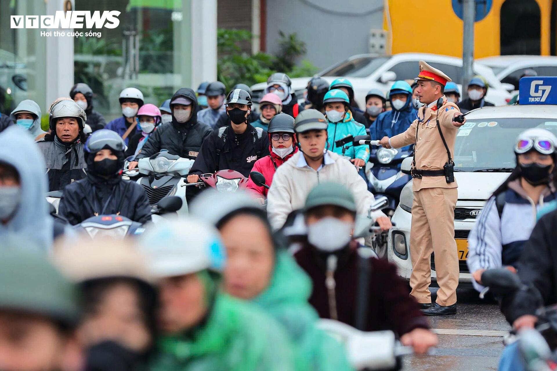Lực lượng CSGT túc trực từ sớm để điều tiết, song áp lực giao thông vẫn rất lớn, đặc biệt trong khung giờ cao điểm sáng và chiều.