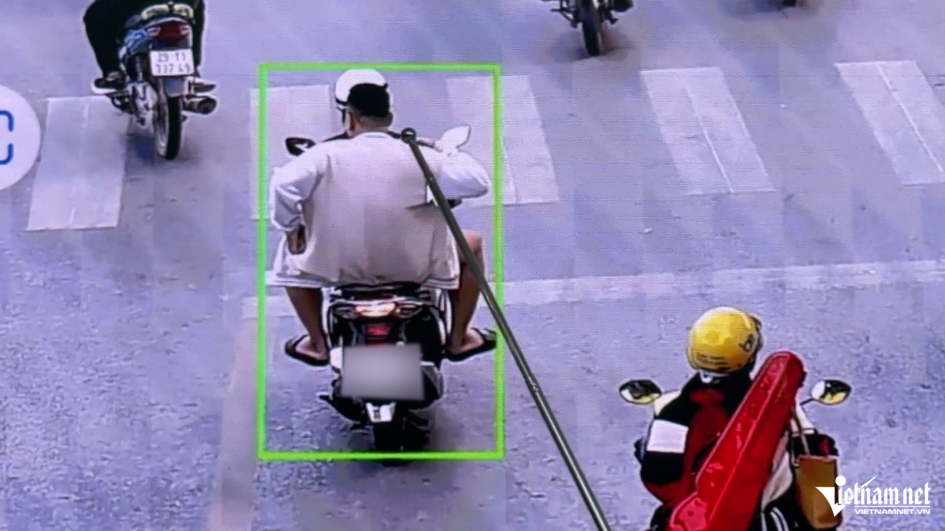 Camera AI phát hiện người ngồi sau xe máy không đội mũ bảo hiểm. Ảnh: Đình Hiếu