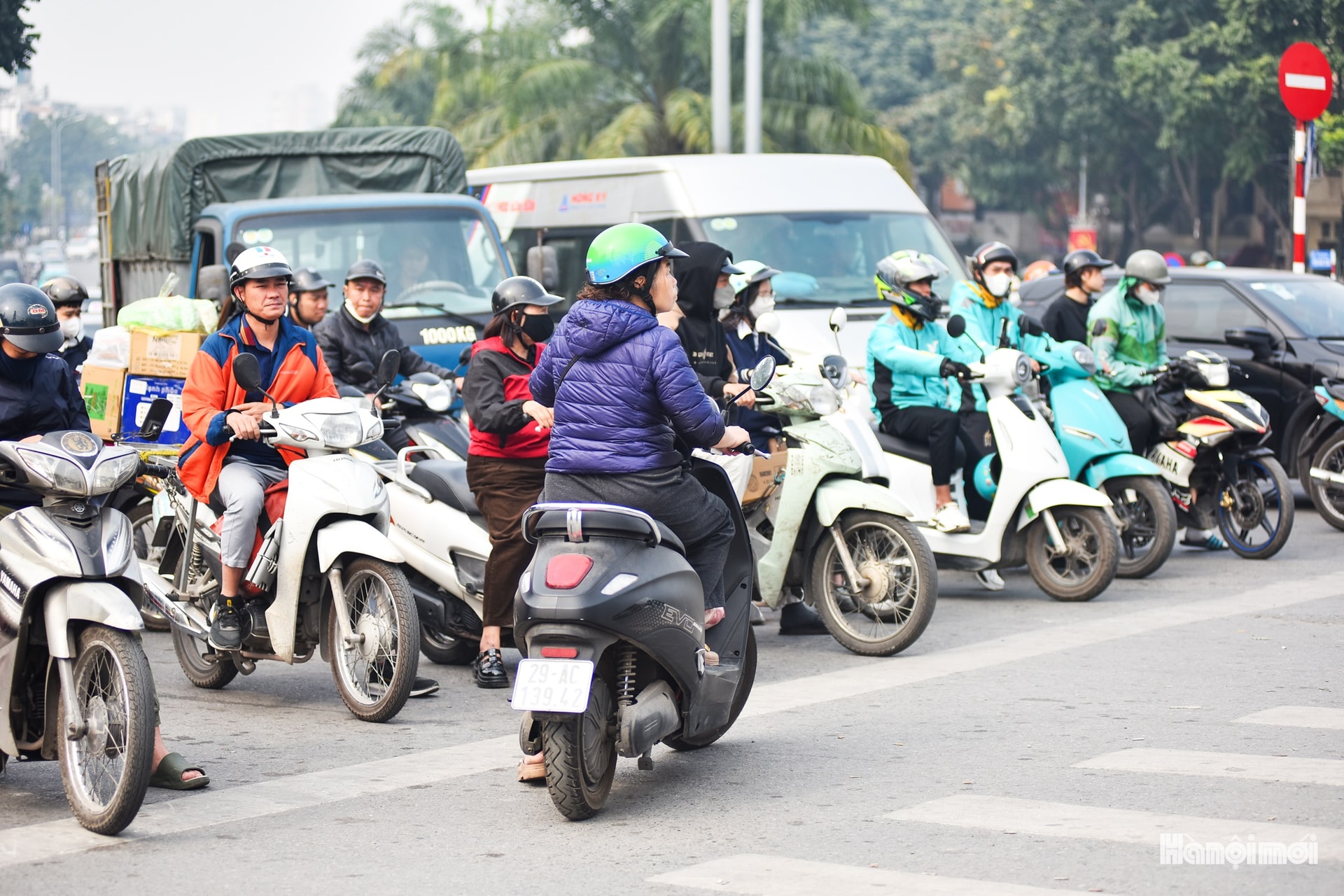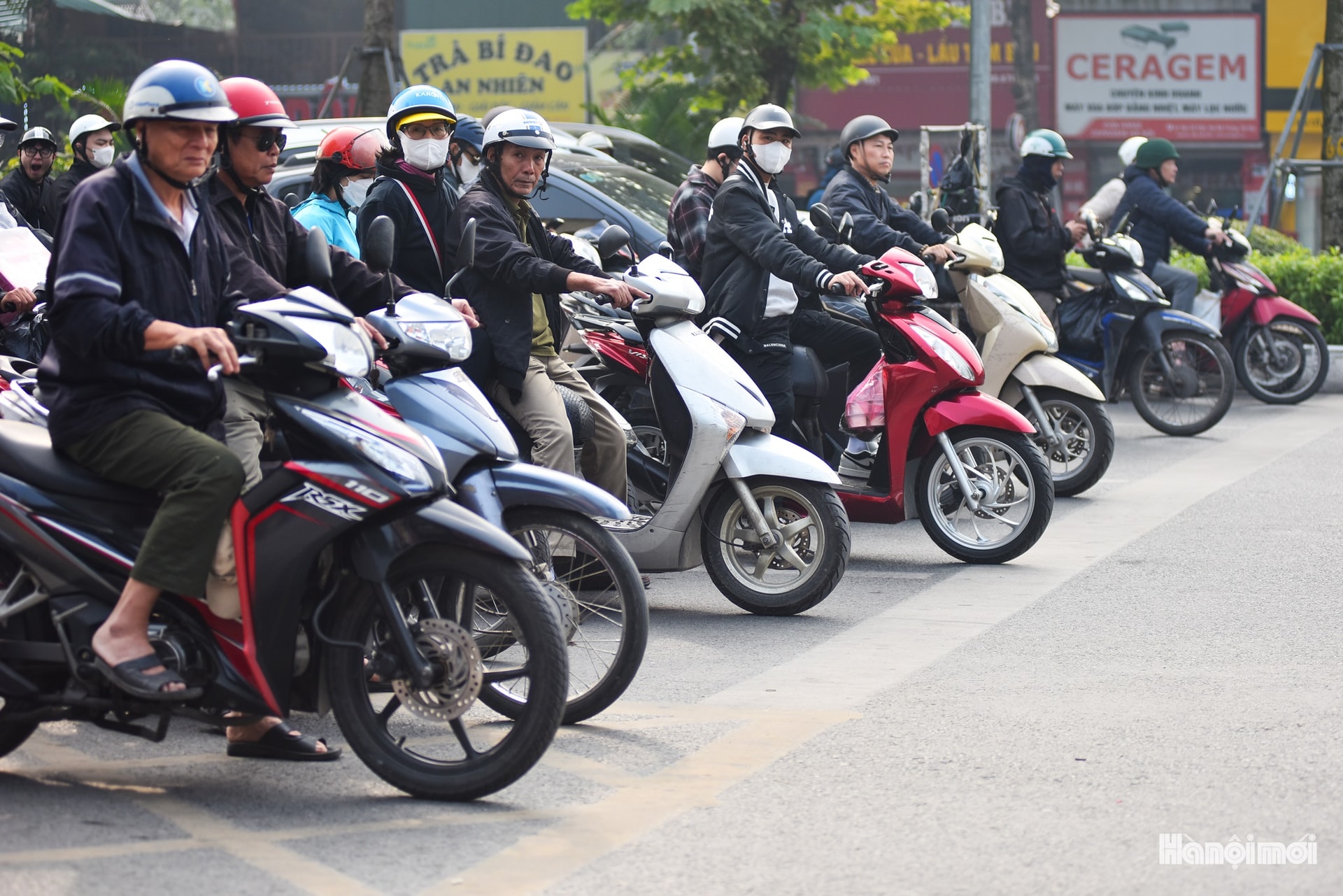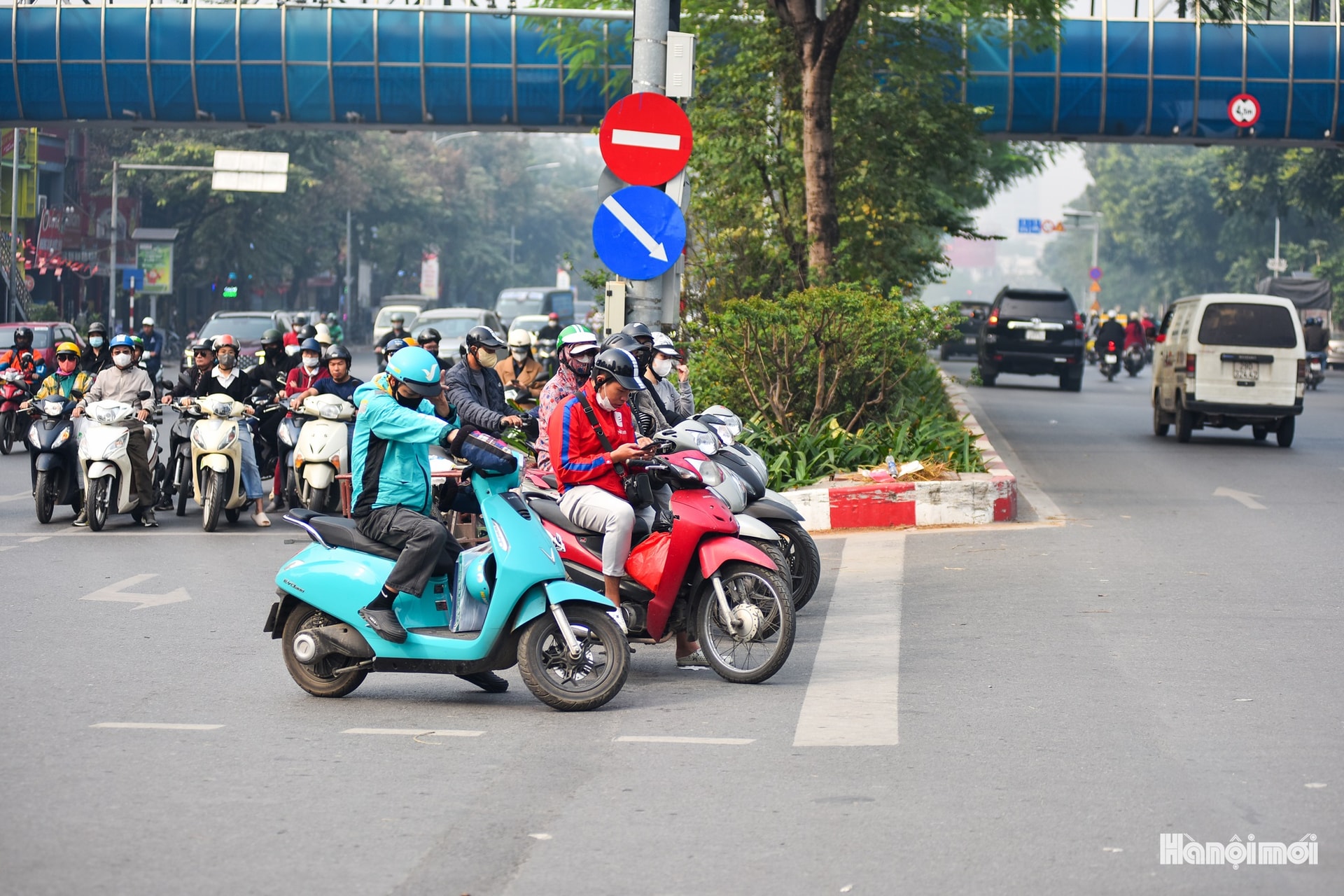 Một số người đi xe máy vẫn lấn lên vạch mắt võng dù phần lớn phương tiện đã dừng đúng vị trí.