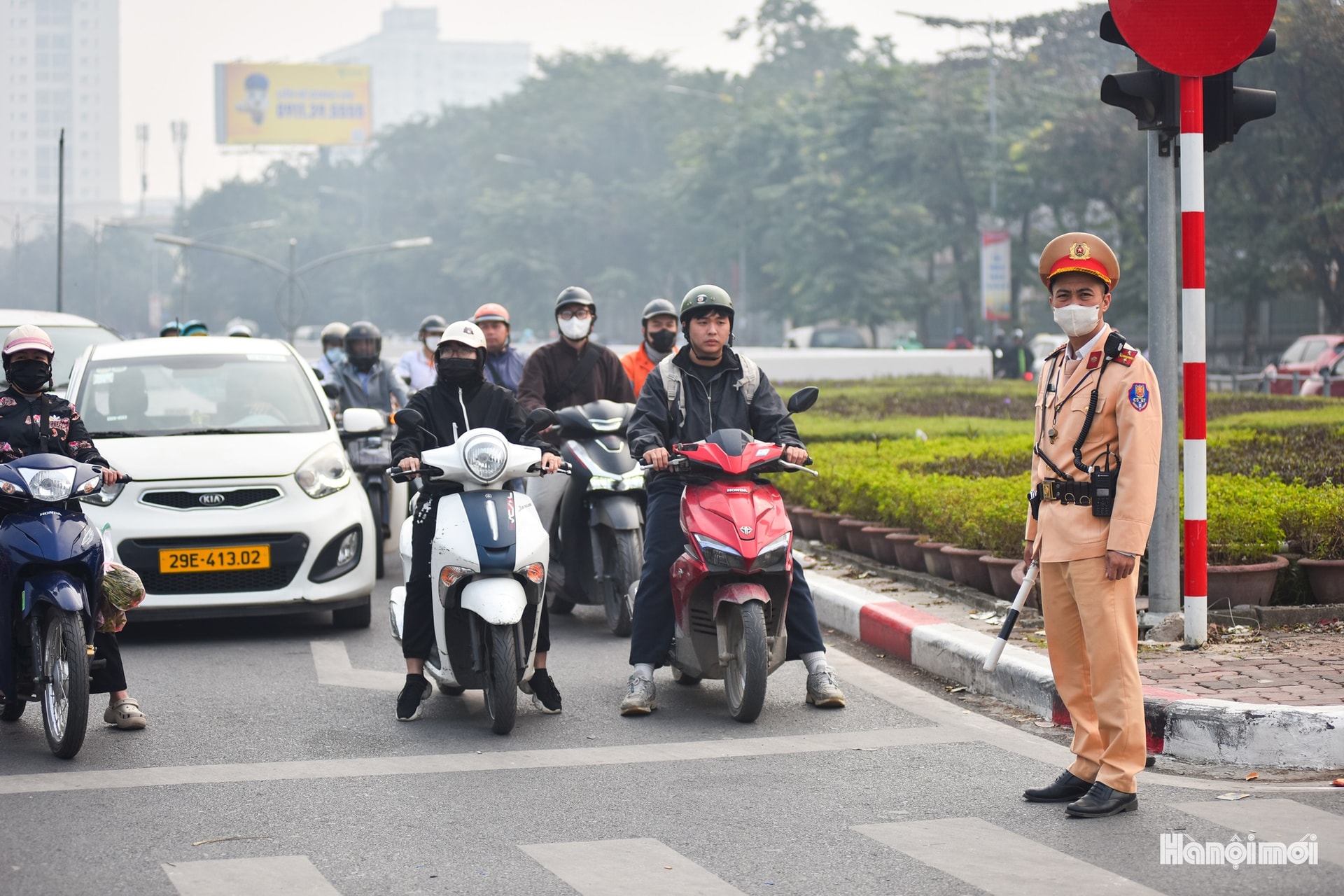 Lực lượng CSGT phối hợp với hệ thống camera AI để xử lý tình huống, hướng dẫn phương tiện trong khung giờ cao điểm.