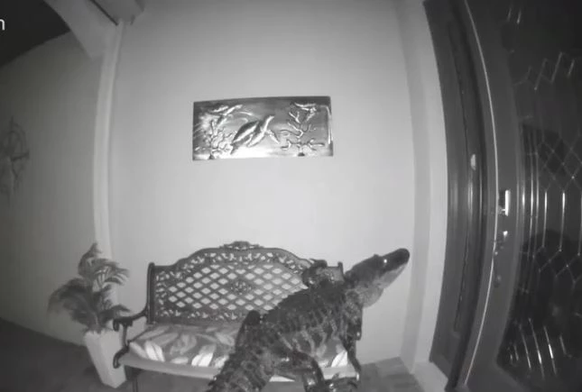 Sự việc xảy ra tại Venice, bang Florida, Mỹ khi một người đàn ông bất ngờ phát hiện “vị khách” không mời mà đến qua camera an ninh trước cửa nhà.
