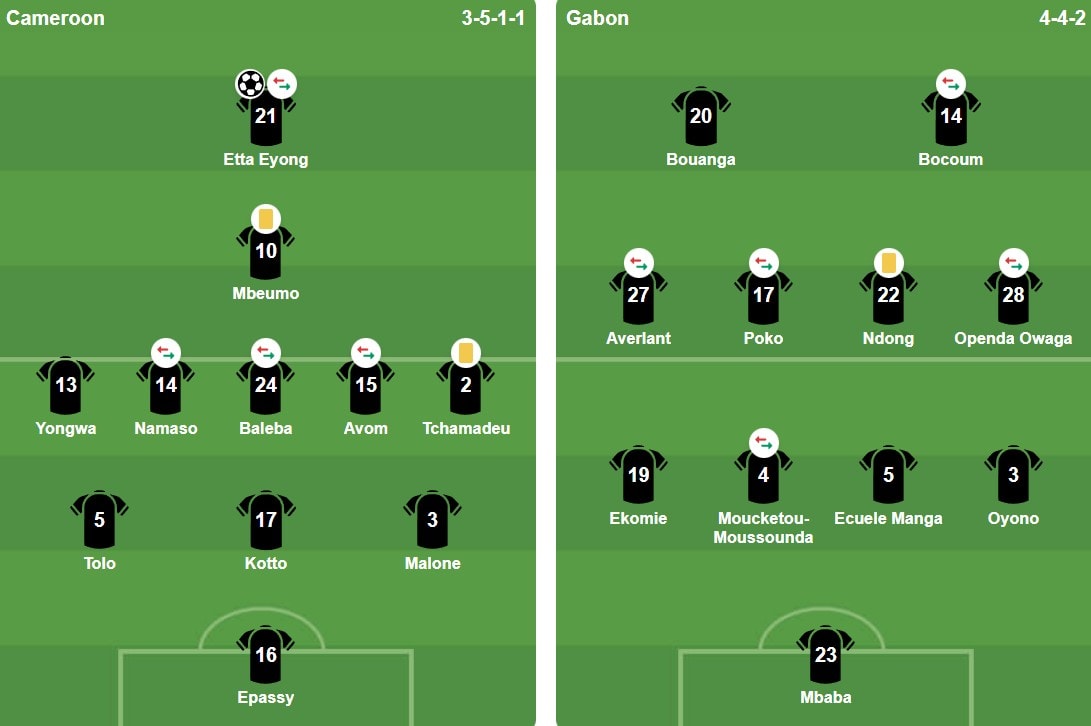 Dù Cameroon chiếm ưu thế, các chân sút như Danny Namaso hay Samuel Kotto lại thiếu đi sự sắc bén để nhân đôi cách biệt. Phía bên kia chiến tuyến, thủ môn Loyce Mbaba của Gabon đã có một ngày thi đấu tập trung khi liên tục từ chối các pha dứt điểm nguy hiểm của đội chủ nhà.