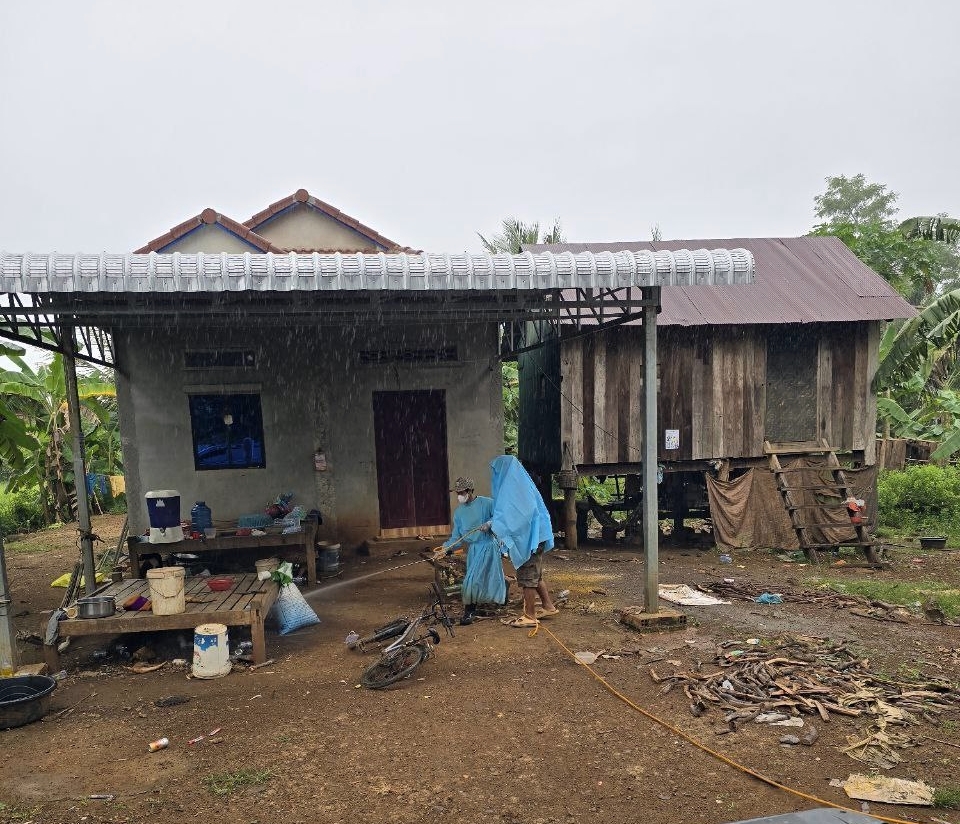 Cán bộ y tế phun thuốc khử trùng. ( Ảnh: Bộ Y tế Campuchia)