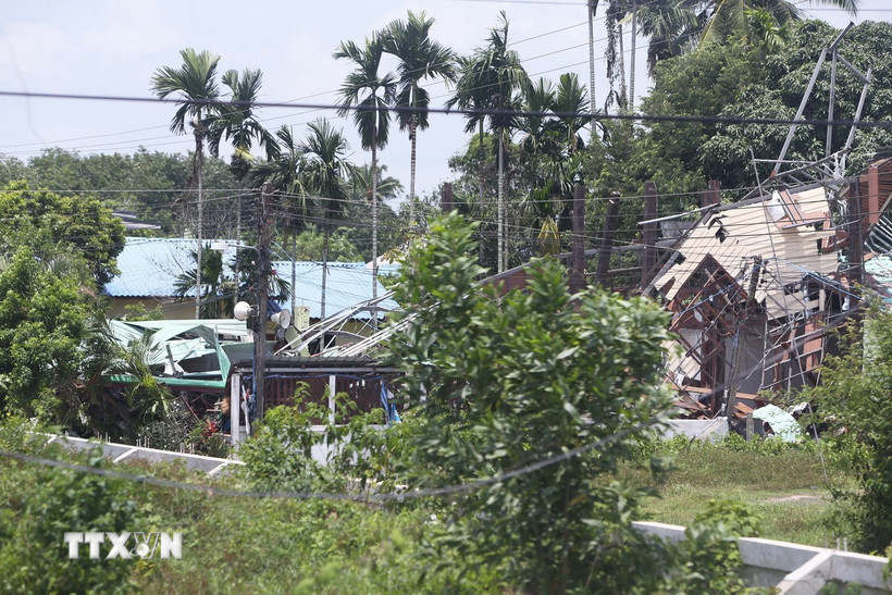 Những ngôi nhà bị phá hủy do xung đột tại Si Sa Ket, Thái Lan. (Ảnh: THX/TTXVN)