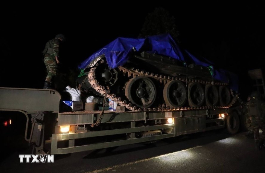Tối 26/10/2025, Quân đội Campuchia bắt đầu rút khí tài quân sự, vũ khí hạng nặng khỏi khu vực biên giới tranh chấp. (Nguồn: AKP/TTXVN phát)