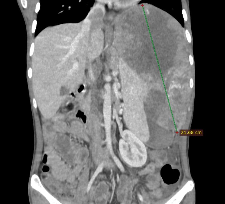 Hình ảnh khối u gan kích thước lớn của bệnh nhân 26 tuổi. Ảnh: BSCC.