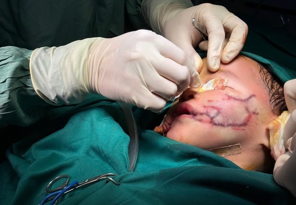 Một bệnh nhi bị chó cắn. Ảnh: Bệnh viện Đa khoa tỉnh Tuyên Quang.