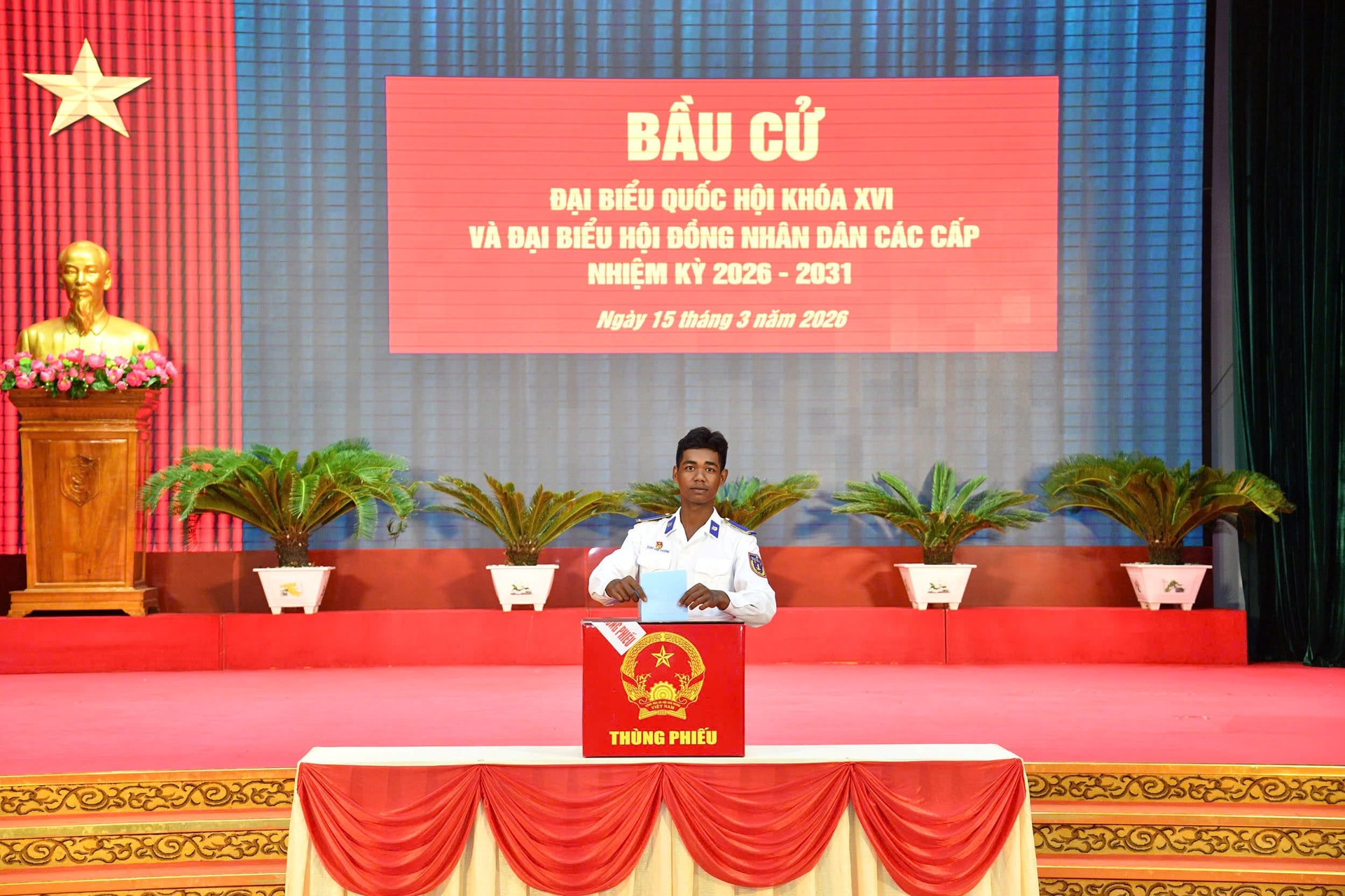 Công tác bầu cử tại Bộ Tư lệnh Vùng Cảnh sát biển 4 diễn ra sôi nổi, hào hứng, bảo đảm an toàn, đúng quy định, với tỷ lệ cử tri tham gia bỏ phiếu đạt 100%, góp phần vào thành công chung của cuộc bầu cử đại biểu Quốc hội khóa XVI và đại biểu Hội đồng nhân dân các cấp nhiệm kỳ 2026 – 2031.