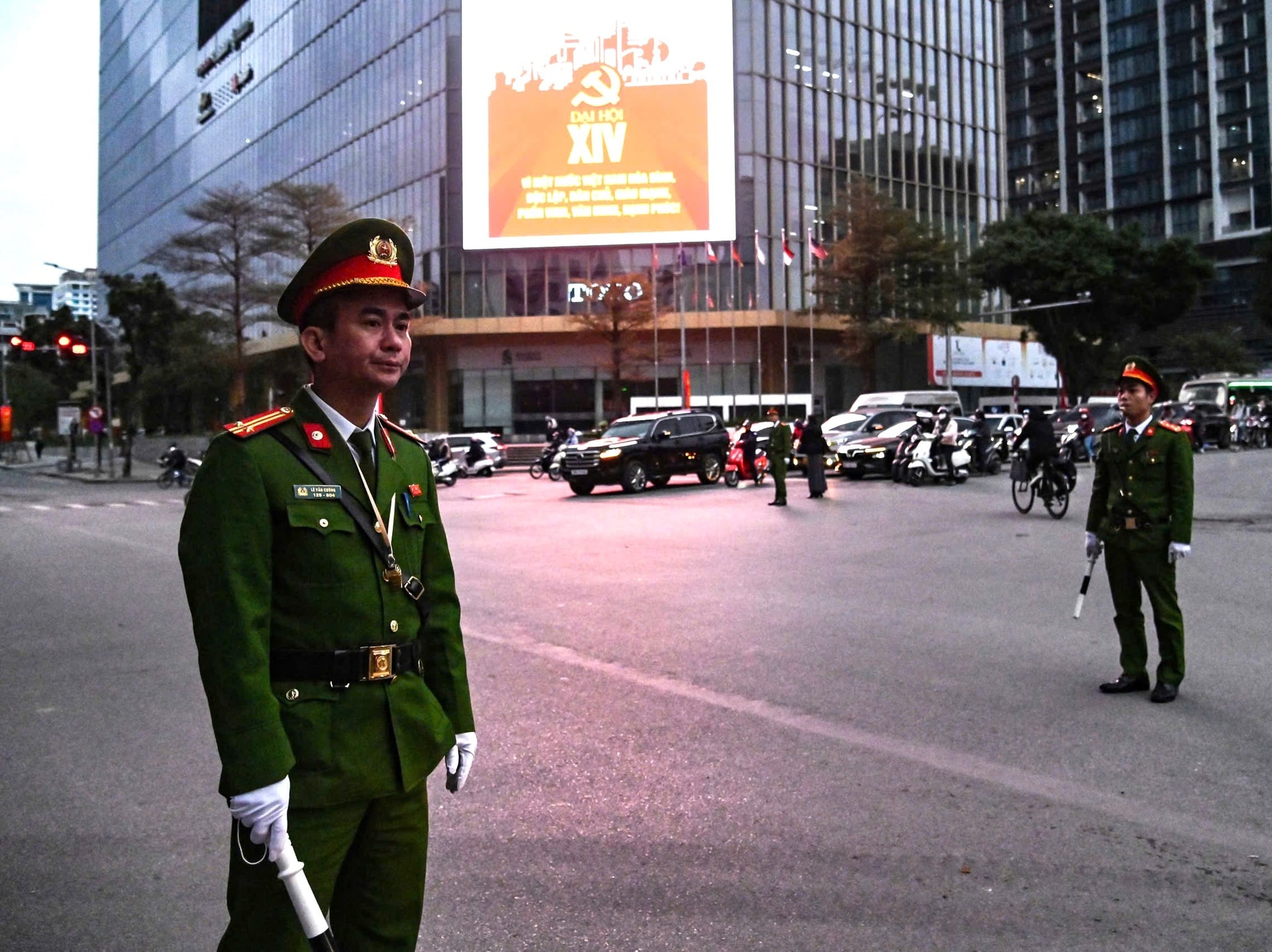 Cán bộ, chiến sĩ Công an thành phố bảo đảm các hoạt động của ngày làm việc thứ tư Đại hội XIV của Đảng diễn ra thông suốt, an toàn. Ảnh: NT