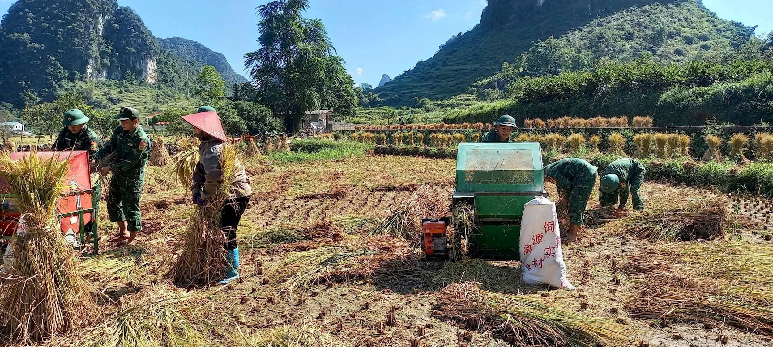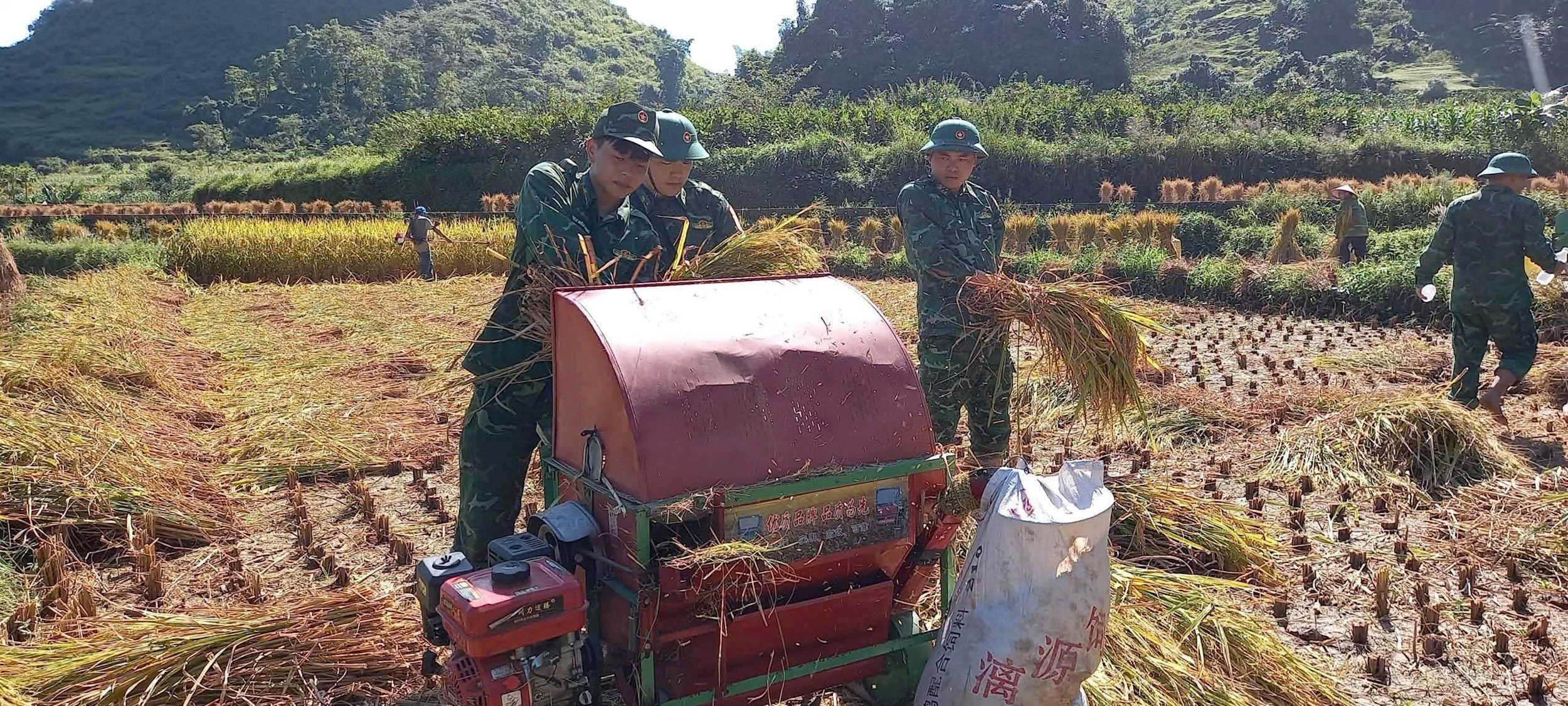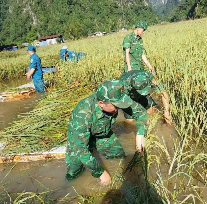 Đồn Biên phòng Quang Long và Đồn Biên phòng Ngọc Chung đã chủ động tổ chức lực lượng tham gia giúp đỡ Nhân dân trên địa bàn thu hoạch lúa mùa tránh thiệt hại do mưa lũ gây ra