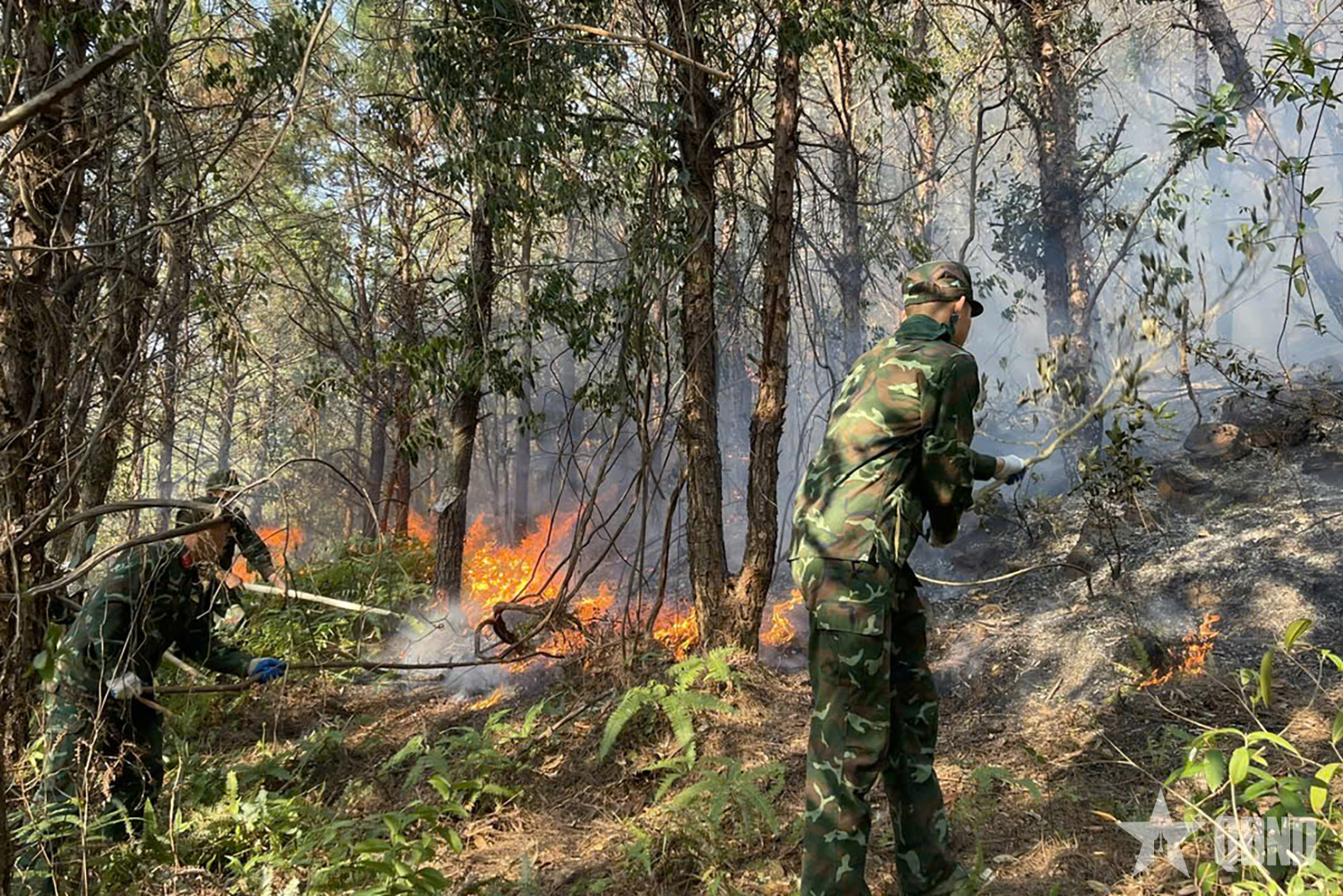 Lực lượng vũ trang tỉnh Quảng Ninh tham gia chữa cháy rừng trên địa bàn.